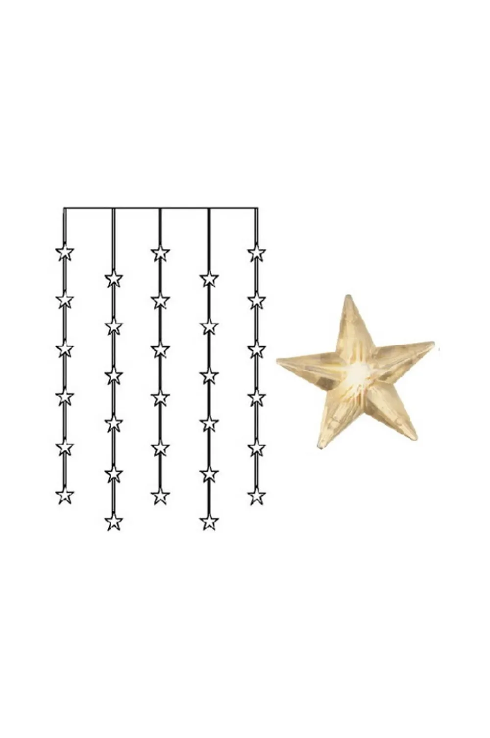 Gennemsigtigt stjernegardin med varm hvid glans til indendørs brug. Placer gardinet i vinduet som en smuk dekoration med lys. Stjernegardinet har 30 LED-lyskilder.