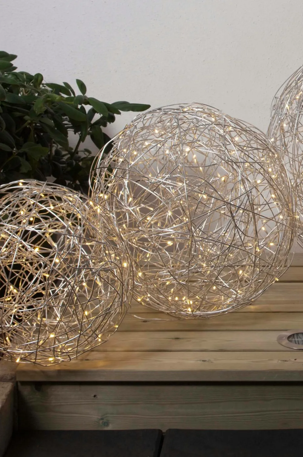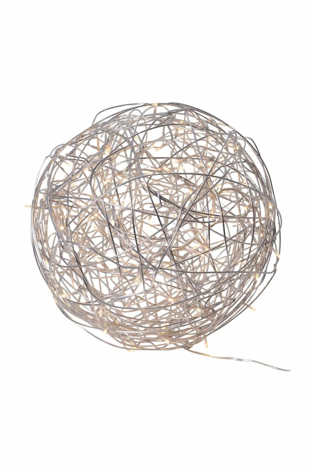 Dekorativ globe til både indendørs og udendørs brug. Inde i dekorationen er der en LED-lyskæde, der giver et varmt hvidt lys. Designet af Charlotte Falck.