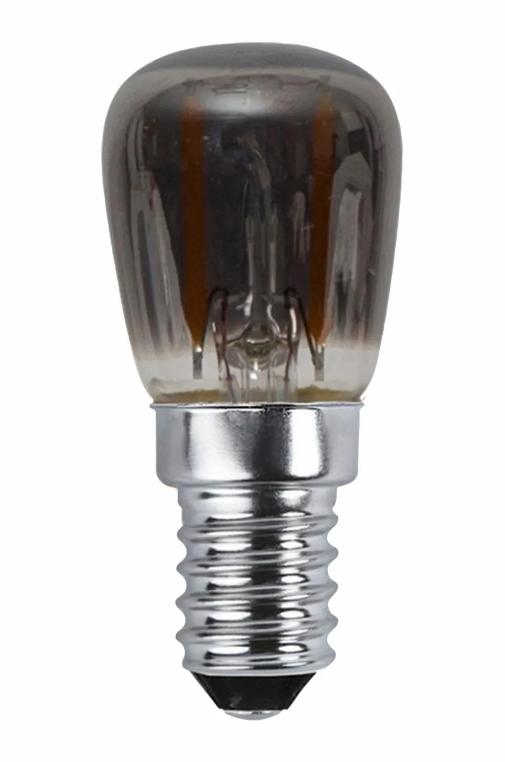Led-pære i kraftigt røgfarvet glas. Lav lumen og varm farvetemperatur. E14-dæksel. Pakke med 7 stk.