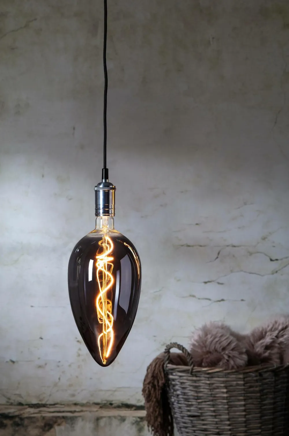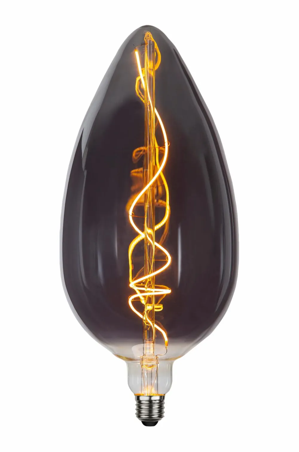 Dekorativ led-lampe med kraftigt røgfarvet glas, der giver en varm hvid glød. Lampen er kompatibel med lysdæmper og har en e27-hætte. Farvetemperaturen er 2200k og lysstrømmen 50lm. Højde: 33 cm