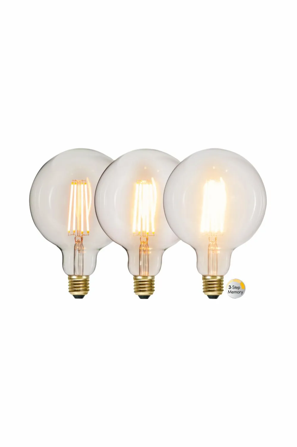 Pære med 3-trins klikdæmpning med hukommelsesfunktion! Lysstyrken ændres nemt ved at klikke på lyskontakten, 60-300-700lm. Farvetemperaturen er 2100k og lysstrømmen 700lm. Hætte e27. Starter med den senest anvendte lumen.