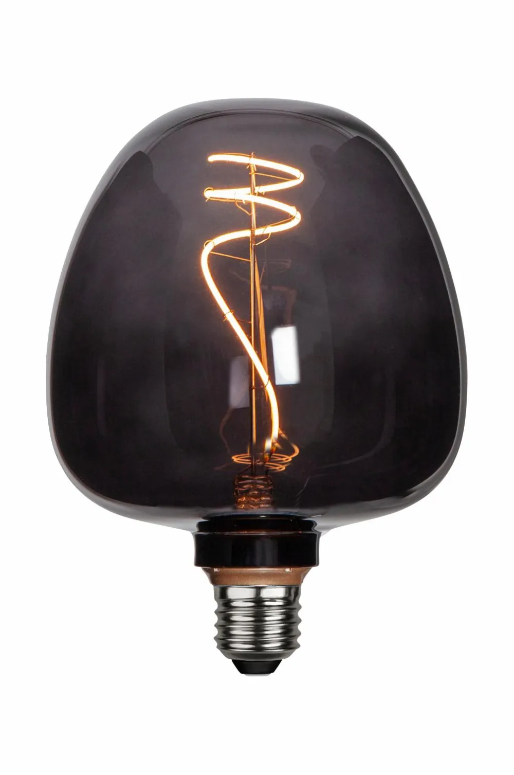 Lækker LED-pære med spændende form og sort glas. Giver et hyggeligt og varmt skær. Velegnet til dekorationsbelysning og passer perfekt i vores ophæng eller lampefødder. Kan placeres på sidebord eller i vindueskarmen, hvor som helst bliver den en indretningsdetalje. Pærens effekt 2W. Ikke kompatibel med lysdæmper.
