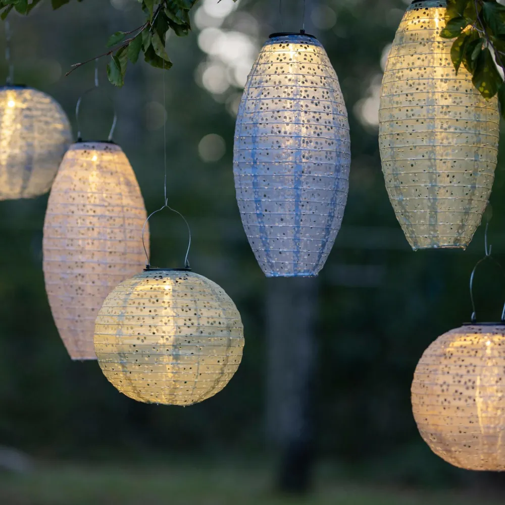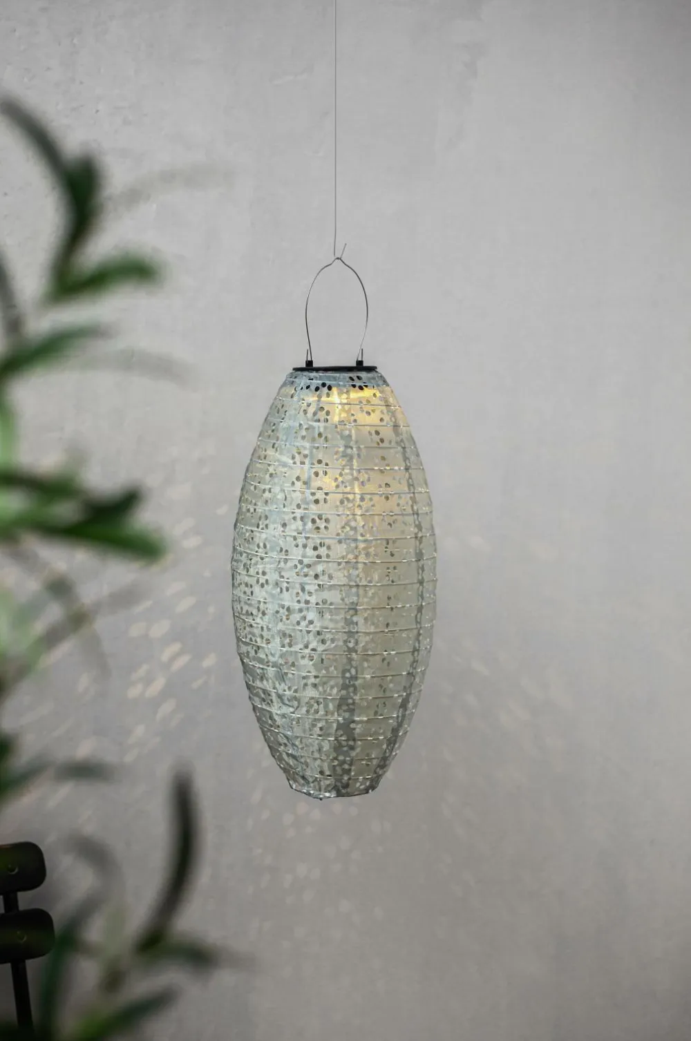 Solcellelanternen Festa er lavet af polyester med et hulmønster, der skaber et smukt skyggespil, når den lyser i mørket. Festa bliver en smuk dekoration både i haven, på terrassen eller altanen. Placer lanternen, hvor solen kan nå panelet i løbet af dagen for at få den ultimative opladning af det medfølgende batteri.