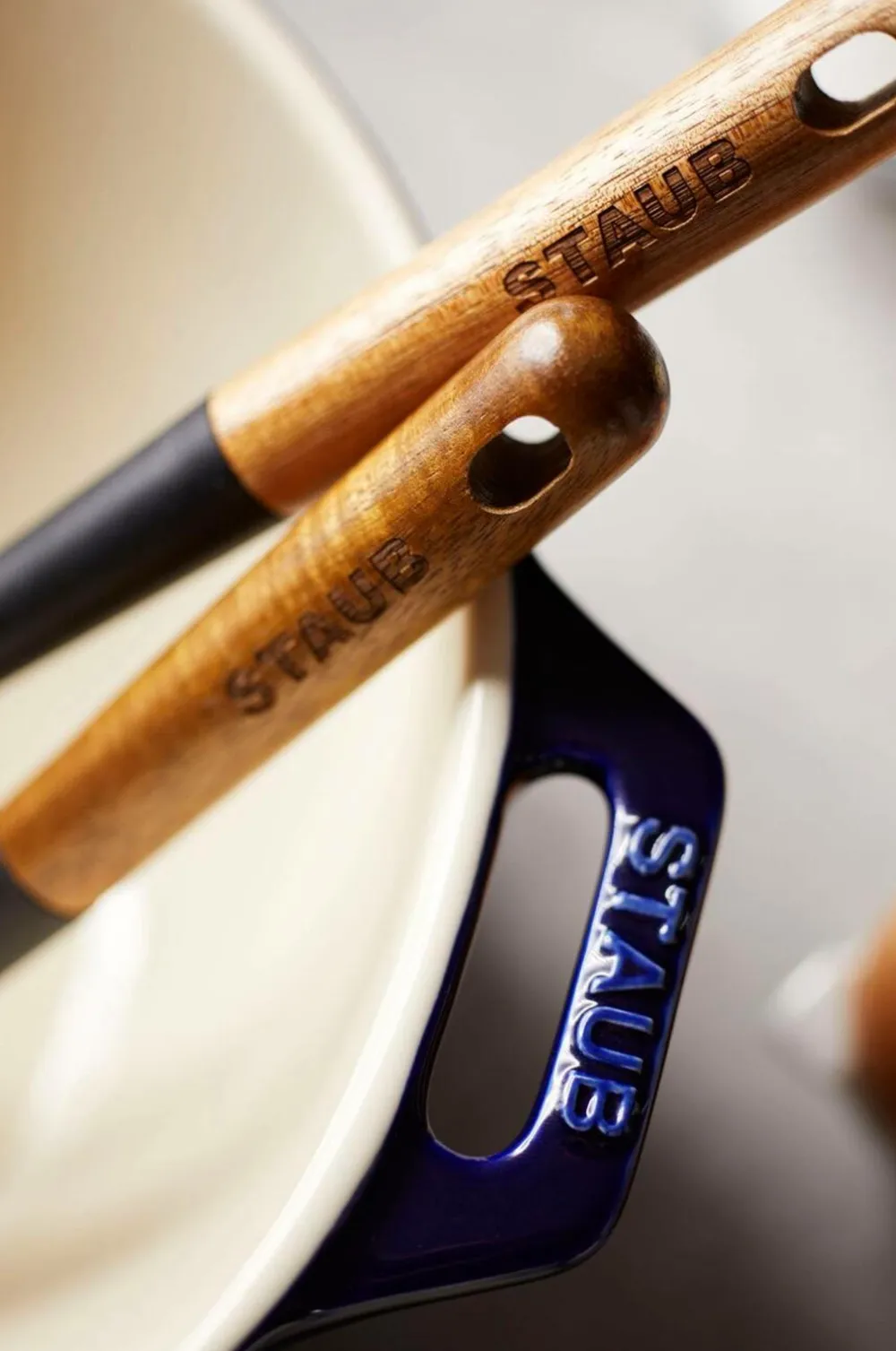 Fremstillet af sort, mat silikone og er derfor meget varmebestandig (op til 220 °C) og er velegnet til brug på non-stick belagte overflader samt med støbejernsgryder og keramiske køkkengrej. Håndtaget er ergonomisk formet og lavet af akacietræ.