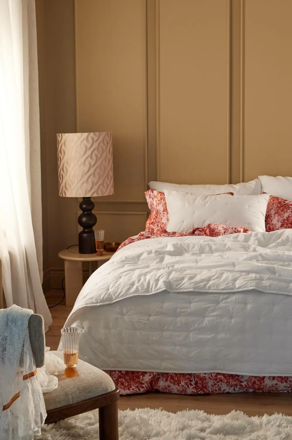 • Quiltet, foret sengetæppe i sprød bomuldspoplin