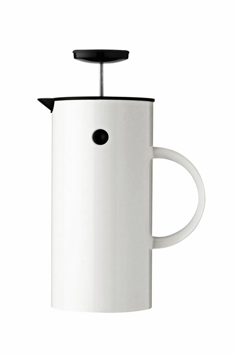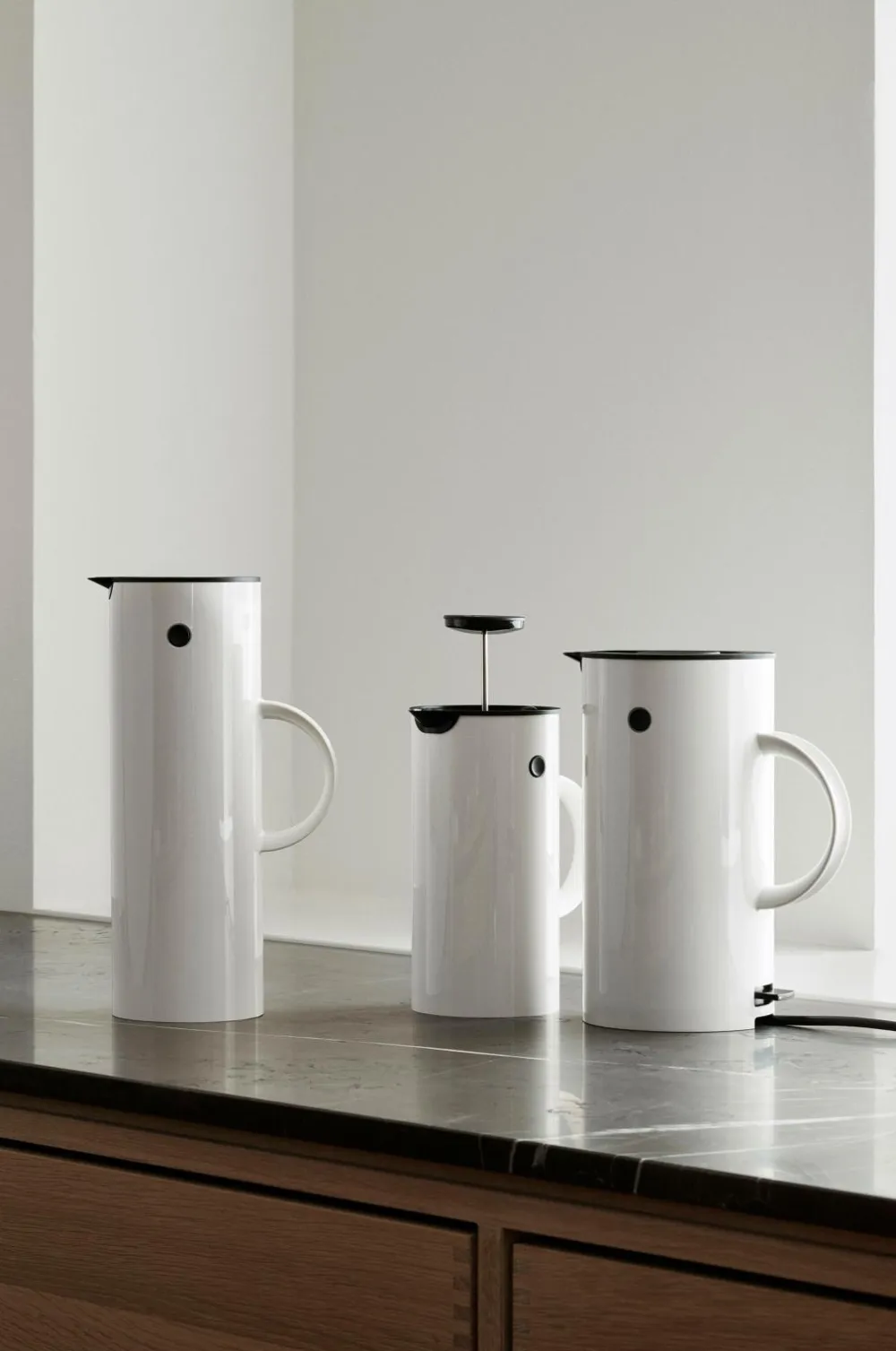 Med samme enkle formsprog som vakuumkanden EM77, rummer EM stempelkanden otte kopper, og de dobbelte sider holder kaffen varm i længere tid. Drej låget for at hælde kaffen på og drej igen for at lukke.