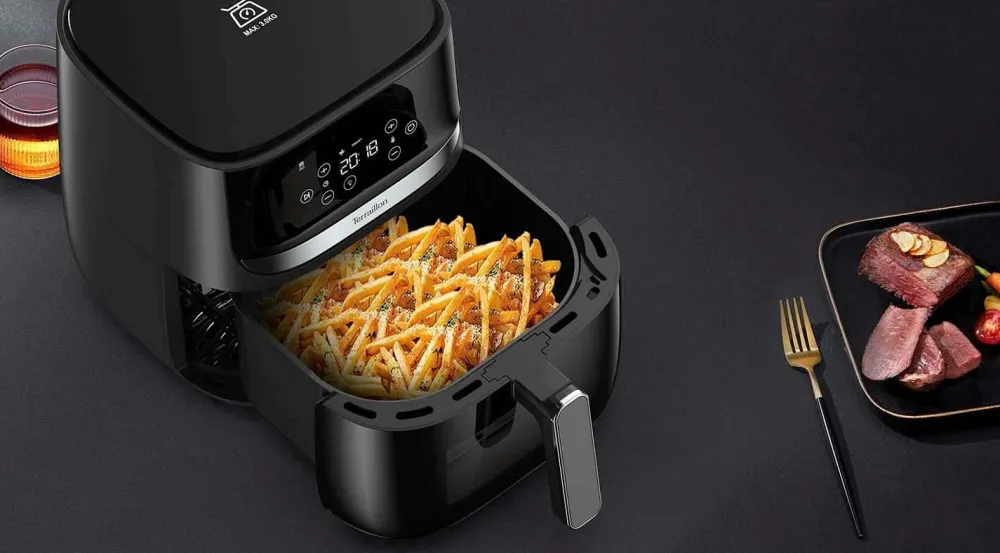 – Indeholder 8 automatiske tilberedningsprogrammer: kylling, bøf, fisk, rejer, pommes frites, quiche, småkager og kiks