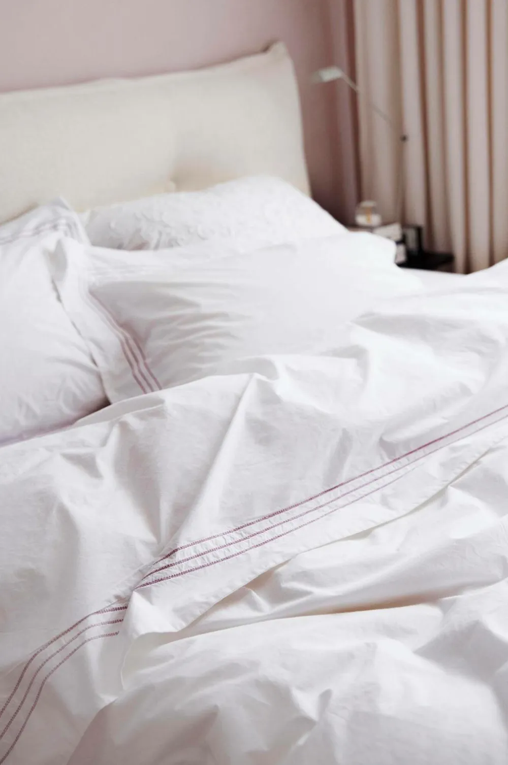 Habibi sengesæt er hvidt, eksklusivt og elegant og giver en følelse af hotelluksus på næste niveau. Smukke og diskrete broderier i flere farver, generøs og eksklusiv indramning på både pudebetræk og dynebetræk, skjulte lynlåse og optimal taktilitet. Sengetøjet er fremstillet af langfibret bomuld af høj kvalitet, hvilket giver en fremragende tekstilkvalitet. Det udstråler storhed og charme, så man får lyst til at rede sengen og nyde følelsen. – percale tc 300 – dynebetræk og pudebetræk har skjulte lynlåse i bunden – kontrastfarvet broderet ramme på både dynebetræk og pudebetræk – sengesættet består af 1 dynebetræk og 1 pudebetræk – design fås i 3 forskellige farver – pakket i en eksklusiv æske