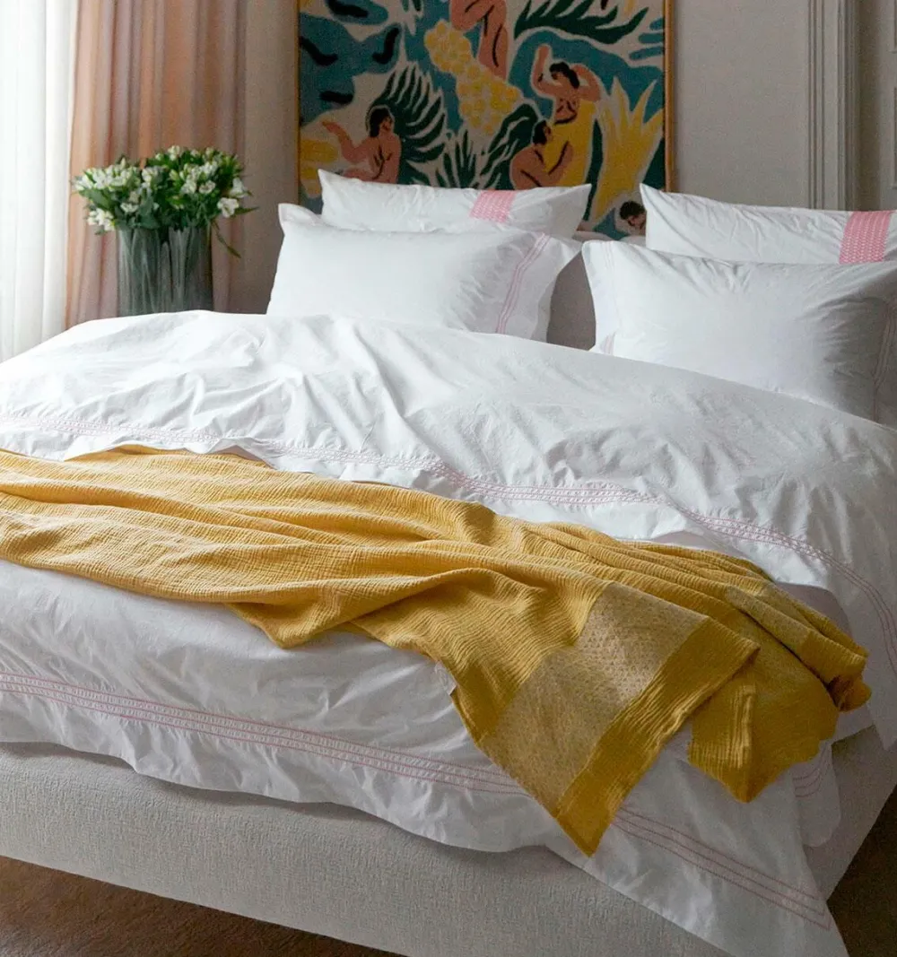 Habibi sengesæt er hvidt, eksklusivt og elegant og giver en følelse af hotelluksus på næste niveau. Smukke og diskrete broderier i flere farver, generøs og eksklusiv indramning på både pudebetræk og dynebetræk, skjulte lynlåse og optimal taktilitet. Sengetøjet er fremstillet af langfibret bomuld af høj kvalitet, hvilket giver en fremragende tekstilkvalitet. Det udstråler storhed og charme, så man får lyst til at rede sengen og nyde følelsen. – percale tc 300 – dynebetræk og pudebetræk har skjulte lynlåse i bunden – kontrastfarvet broderet ramme på både dynebetræk og pudebetræk – sengesættet består af 1 dynebetræk og 1 pudebetræk – design fås i 3 forskellige farver – pakket i en eksklusiv æske