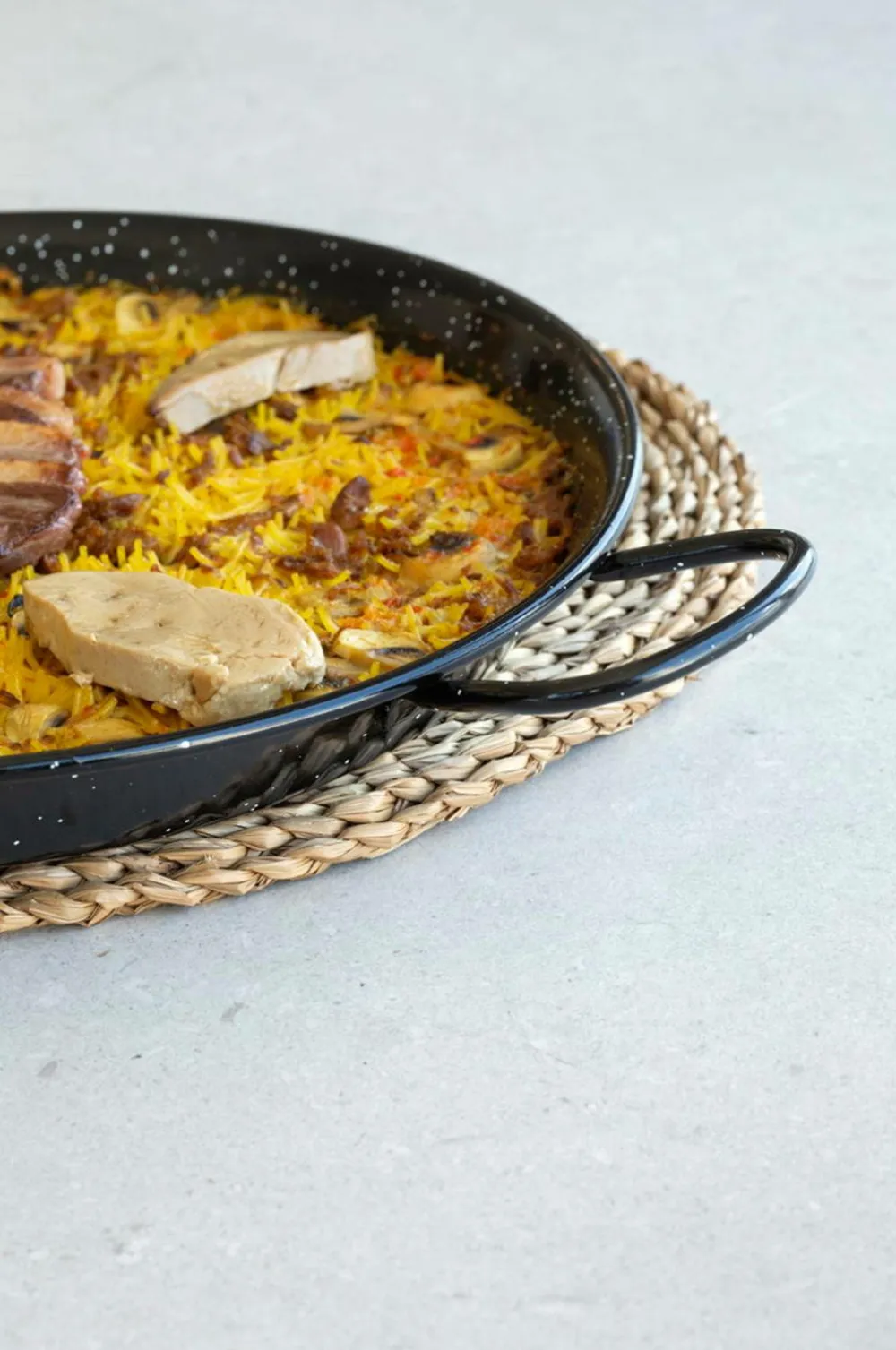 vaellos paellapander er lavet af emaljeret stål. Det er den autentiske paellapande, der bruges til at lave traditionel paella. Vores paellapander er nemme at rengøre og vedligeholde og har 2 håndtag, som er ergonomisk udformet for at give maksimal madlavningskomfort. Sørg for at tørre paellapanden med et håndklæde efter vask, og gnid lidt olie på den for at forhindre, at der opstår rust.