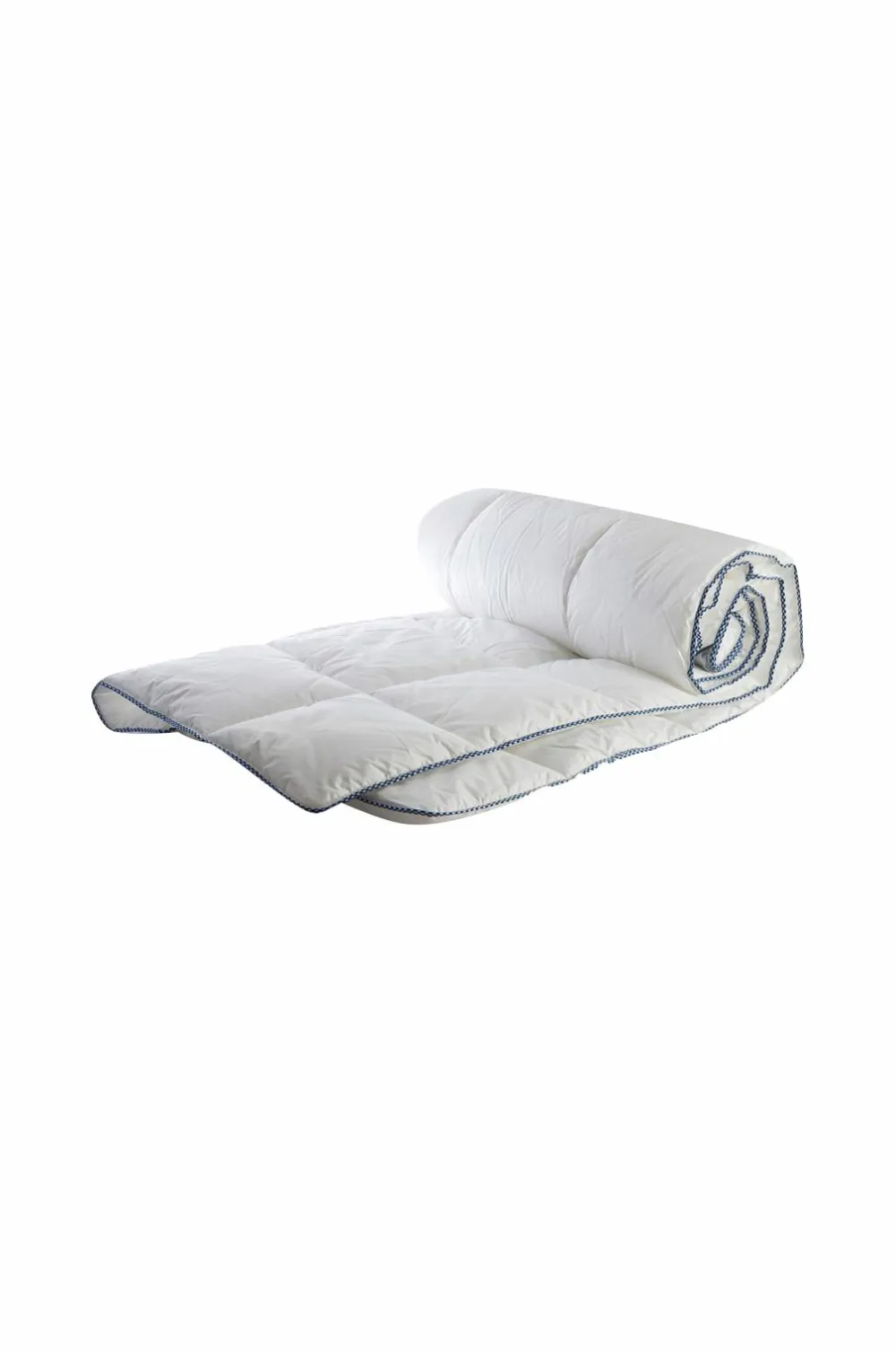 En eksklusiv dyne i 100% økologisk bomuldscambric. bomuldscambric giver dynen en skøn sprød følelse, præcis som en hoteldyne. Dyne er stoppet med softfiling, silikoniseret polyesterhulfiber af højeste kvalitet. Polyesterhulfibrenes egenskaber giver dynen en uimodståelig isoleringsevne og lang levetid. Dynen er gitterstrikket og syet med blå-hvid ternet båndkant.