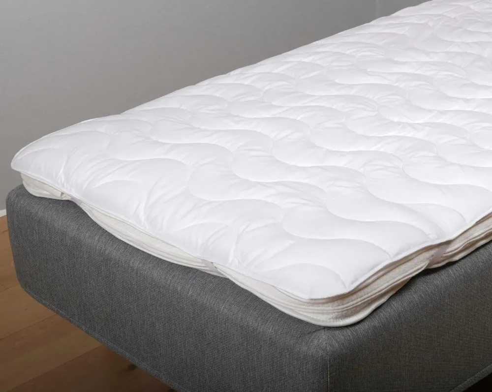 Madrasbetræk lavet af 48% bomuld og 52% polyester og fyldt med polyesterhulefibre.