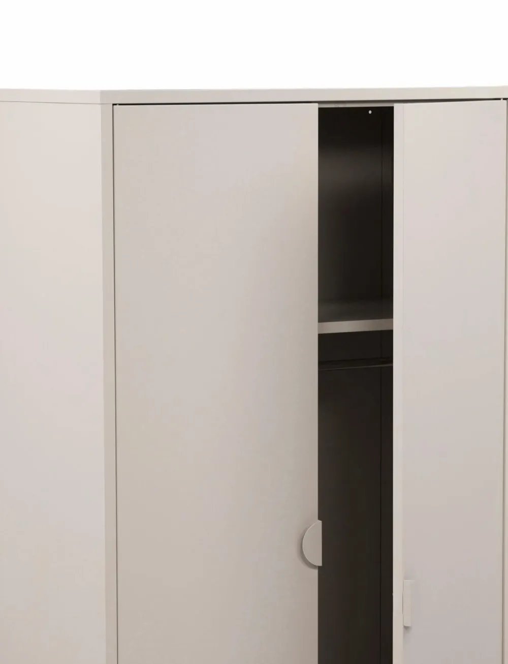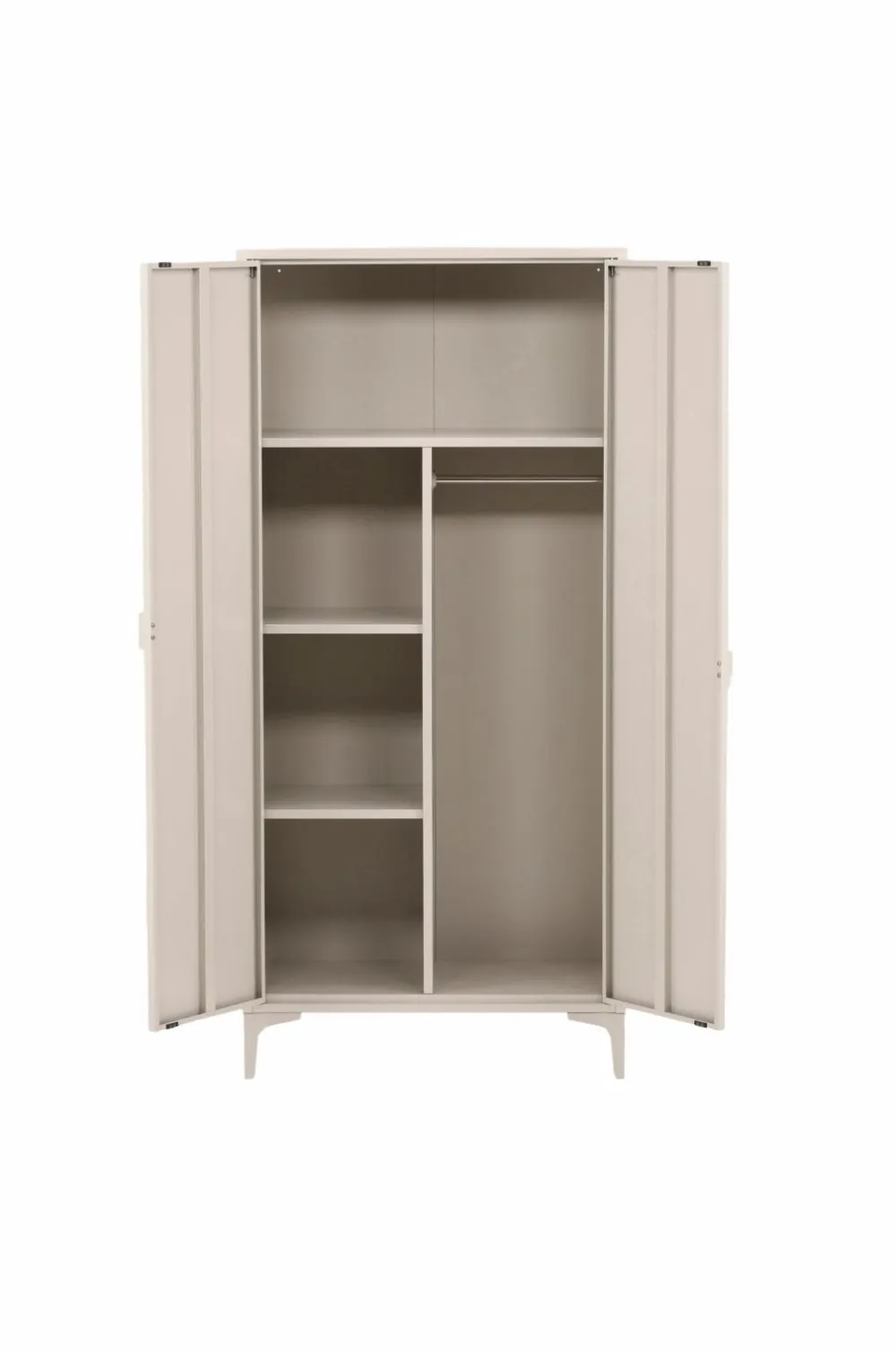 Et smart møbel i harmoniske farver – garderobeskabet fra piring-serien er den perfekte tilføjelse til soveværelset! Dette høje klædeskab i beige stål har to døre, der åbner op til fire hylder og også har plads til bøjler, så det nystrøgne tøj ikke behøver at blive krøllet. Piring løftes af fire pæne ben, der skaber et luftigt indtryk og også letter støvsugeren. Invester i mere opbevaringsplads til dig selv, og få et flot møbel i dit hjem med i købet!