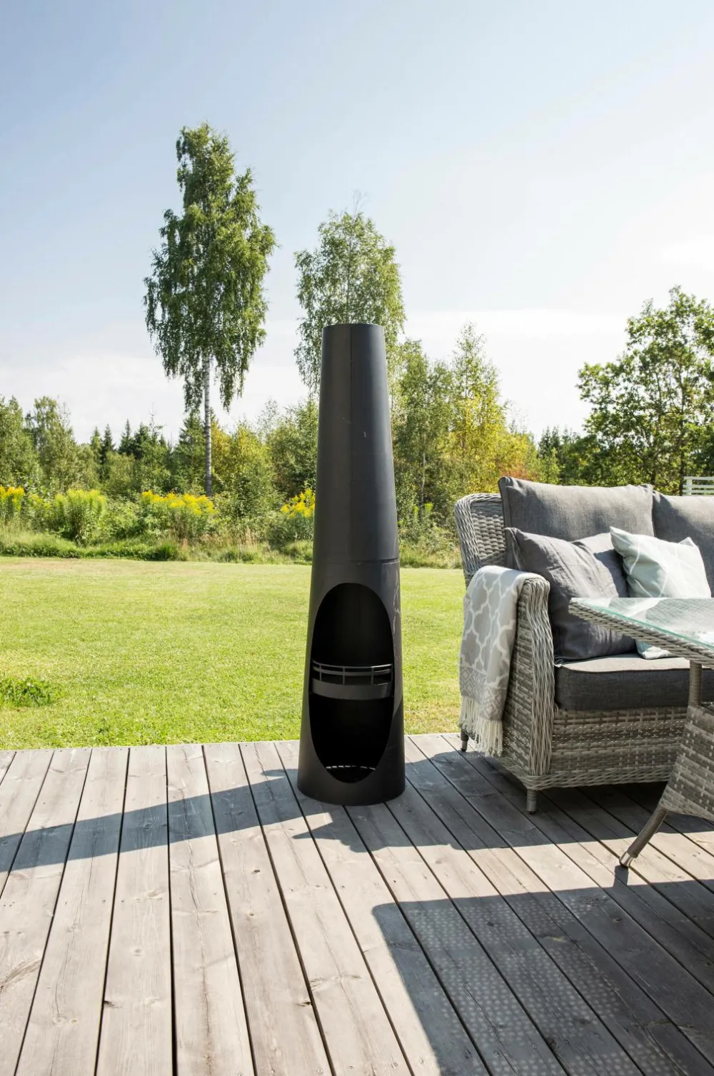 Bastian, en stilren og varmende havepejs, der med garanti hæver hyggefaktoren på terrassen med knitrende gnister. Designet er iøjnefaldende med en cylinderformet krop, der gradvist tilspidser mod toppen. Pejsen er lavet af stål og har to åbninger i forskellige niveauer. Forlæng sommeraftenerne med en perfekt pejs, der både er dekorativ og holder dig og dine gæster varme.