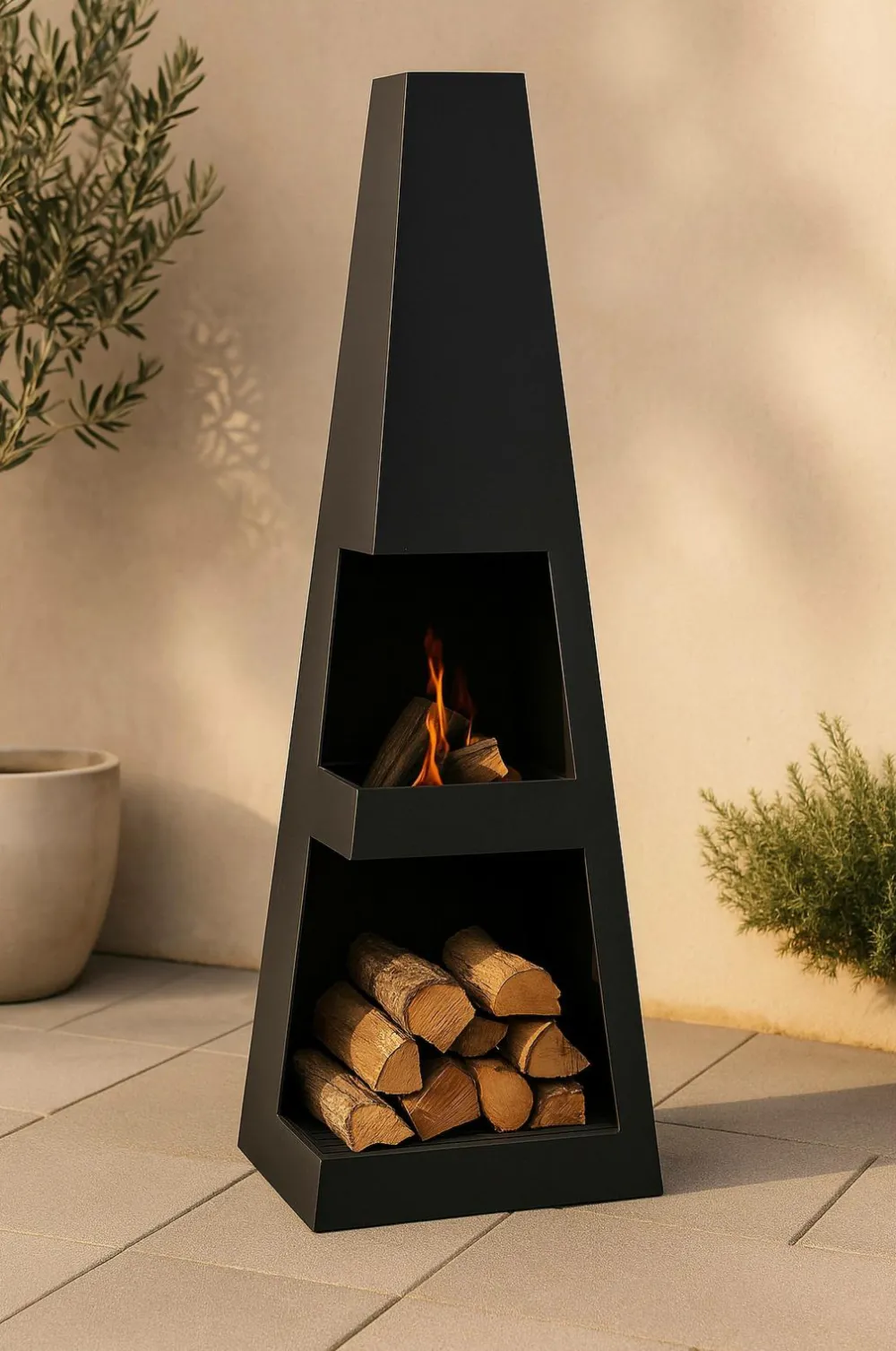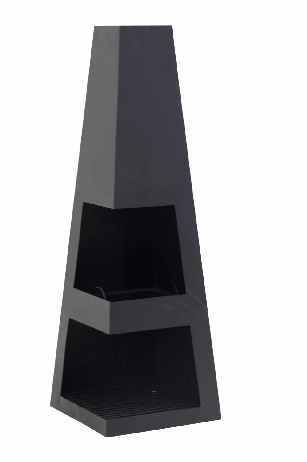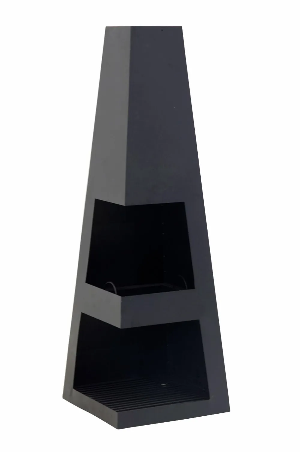 Hyggeligt ildsted til altanen eller terrassen i firkantet model til brænde. Højde 120, 40×40 cm. Lettere montering.