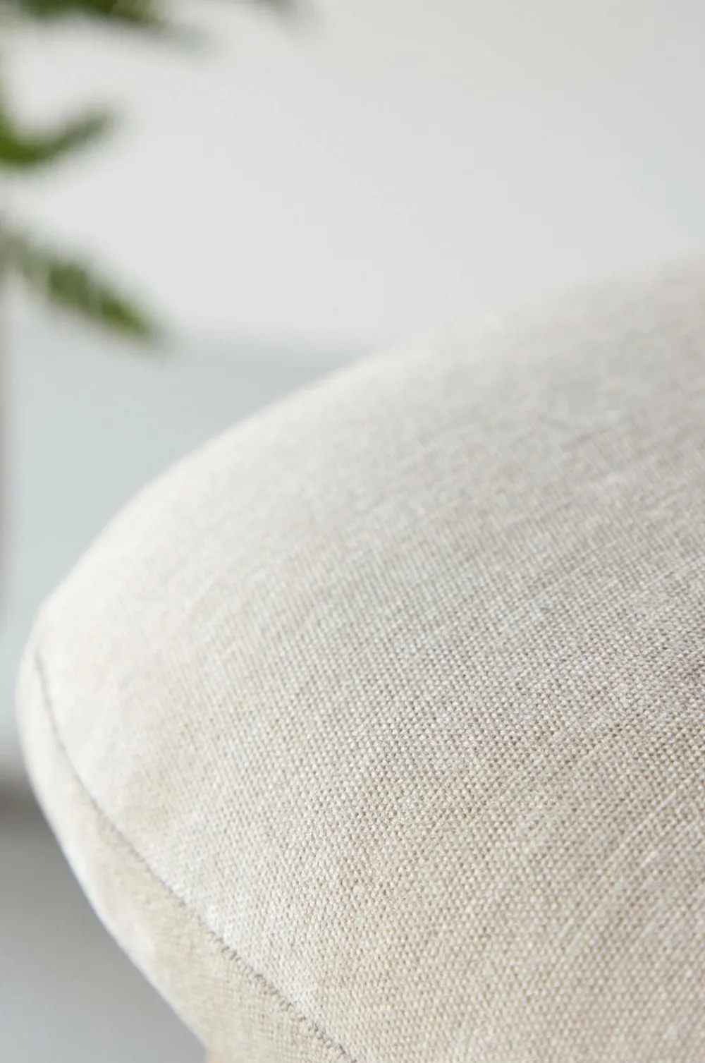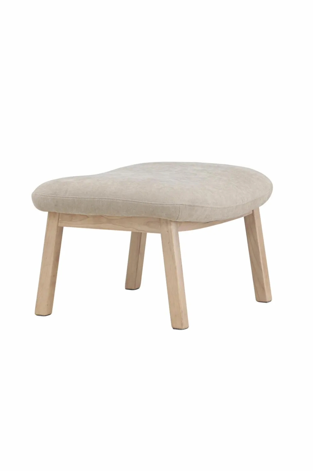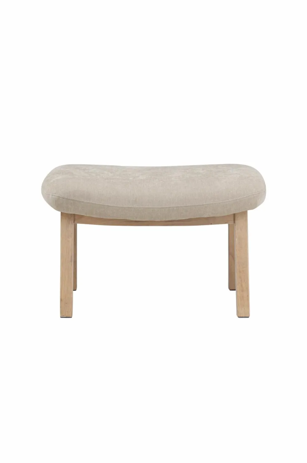 Ottomanen har en neutral beige polstring, der udstråler enkel elegance og en naturlig fornemmelse. De hvide gummitræsben giver en flot kontrast og tilføjer et moderne touch, hvilket gør den perfekt til forskellige indretningsstile, fra minimalistisk til klassisk.