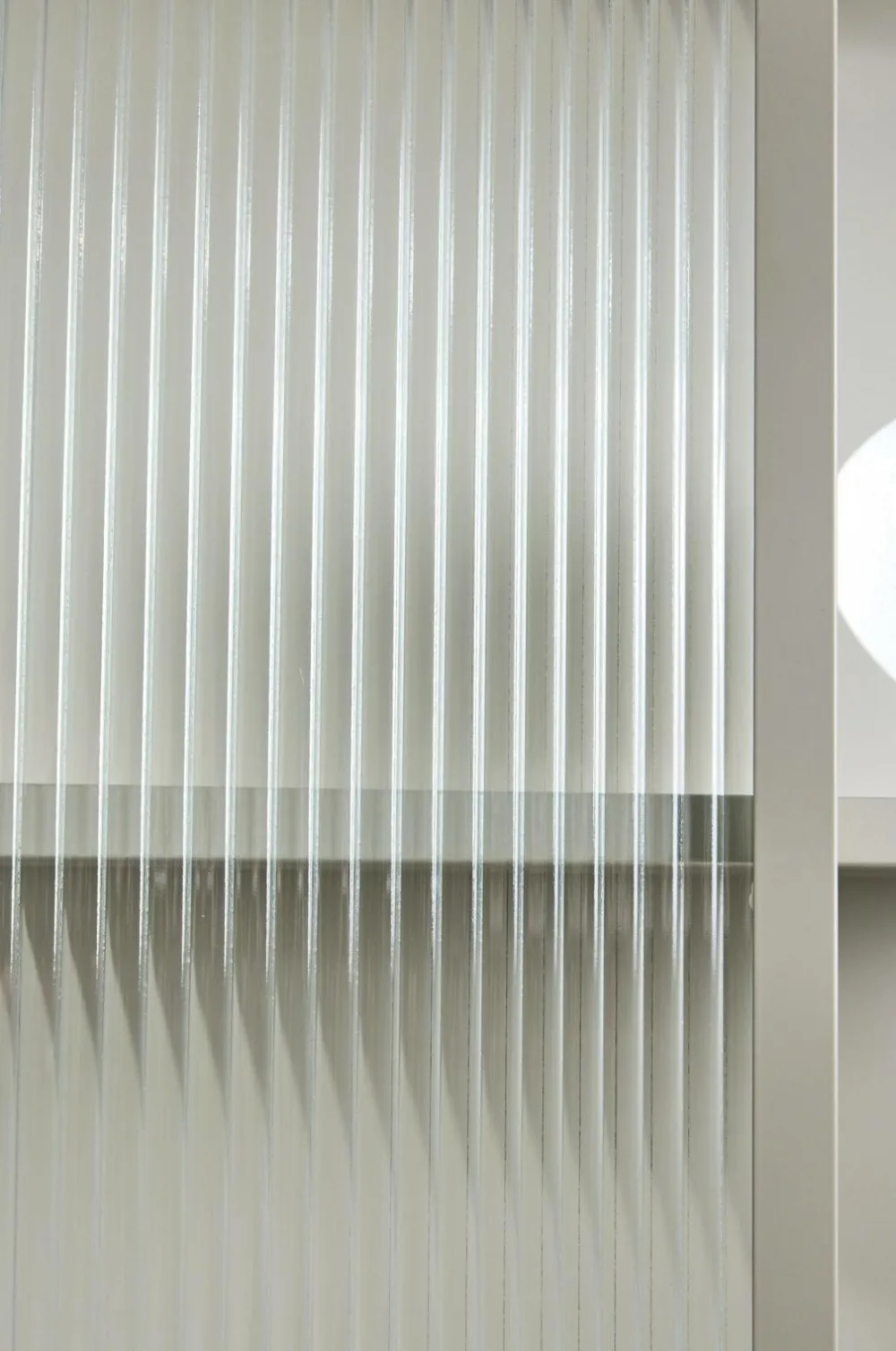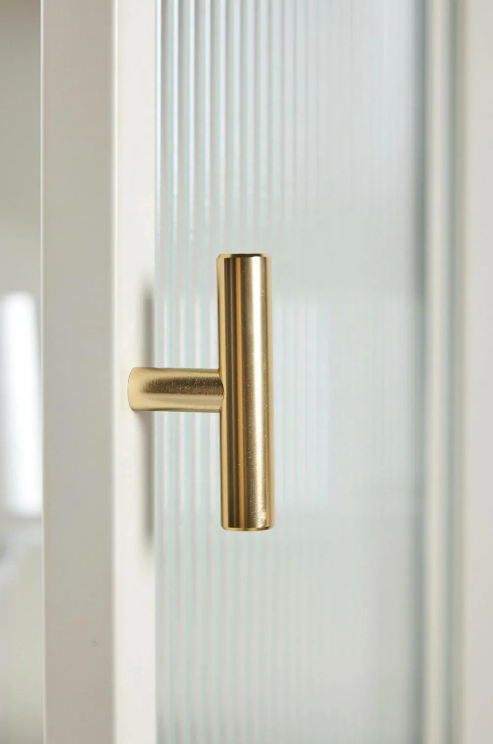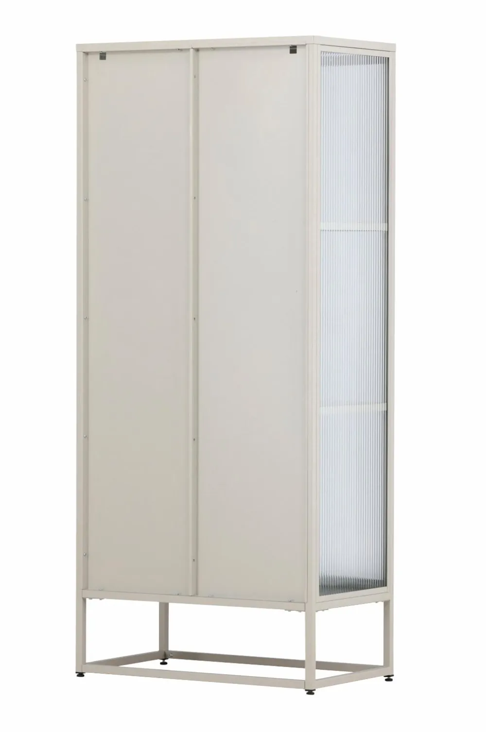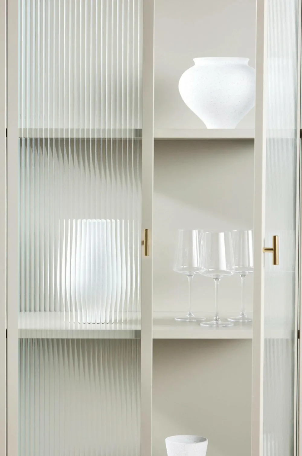 Garis er et smagfuldt skab, der kombinerer funktion og design i perfekt harmoni. Det har to høje glasdøre med riflet struktur, der skaber et sofistikeret look og et smukt spil mellem lys og skygge.