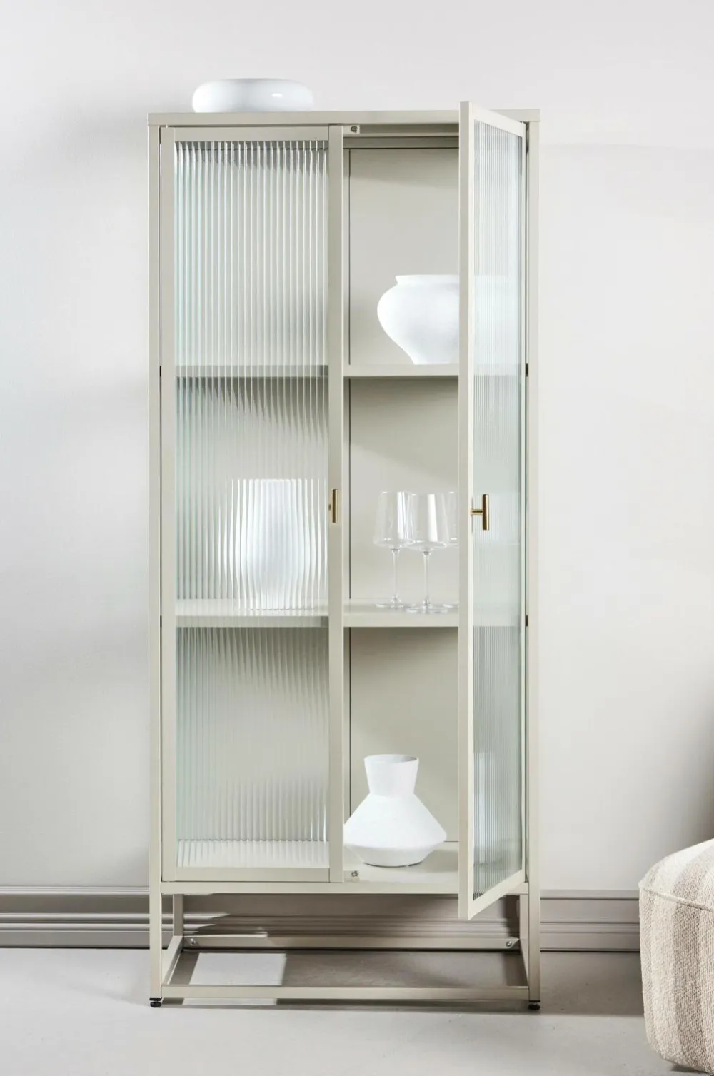 Den beige finish giver et blødt, tidløst indtryk, som passer til både moderne og klassisk indretning. Med to medfølgende hylder tilbyder garis rigelig opbevaringsplads – perfekt til alt fra service til pyntegenstande.