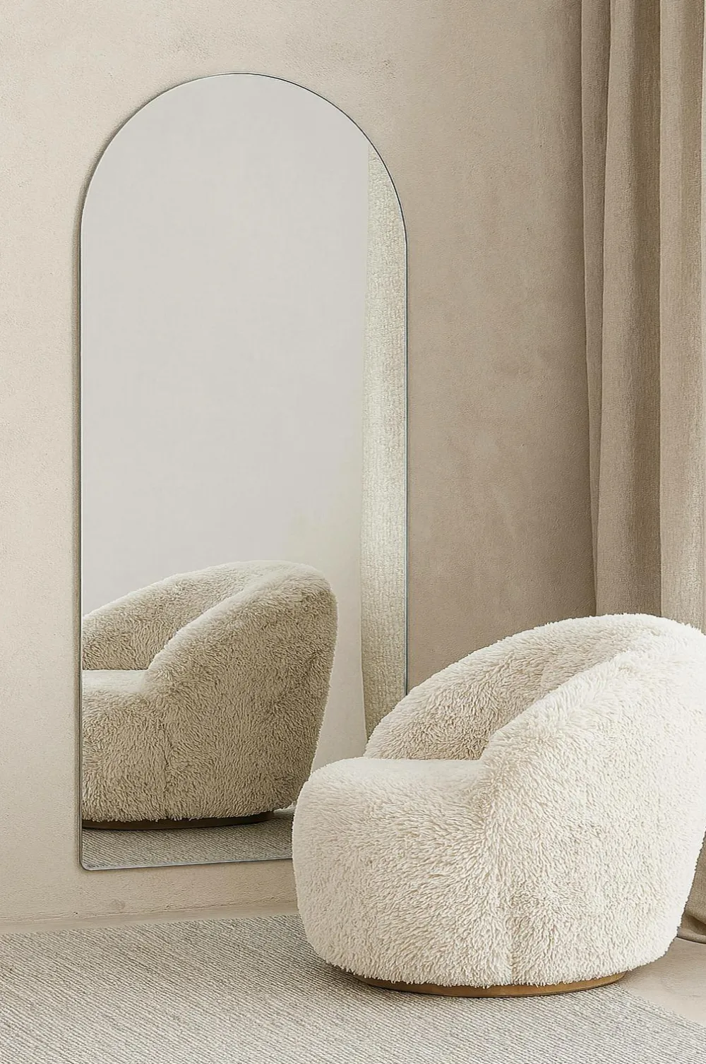 Sarasota er et spejl i fuld længde, der måler 100×193 cm og kombinerer rent design med et blødt og harmonisk udtryk. Spejlet har en slank sølvfarvet ramme og en smuk oval top, der giver det en blidere fornemmelse og tilføjer et elegant touch til rummet.