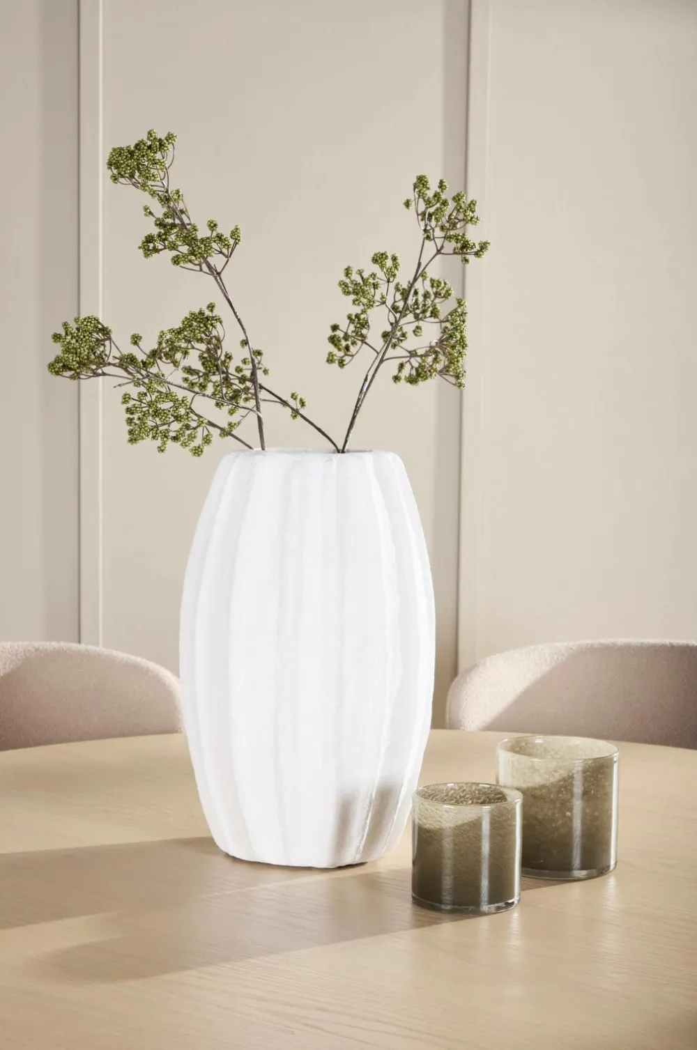 Astoria-spisestolen har et luksuriøst, struktureret betræk, der giver et raffineret touch med sin bløde fornemmelse og subtile struktur. Dens alsidige design gør den nem at integrere i forskellige indretningsstile, fra moderne minimalisme til klassisk elegance. Med sit ergonomiske ryglæn og generøse polstring i sæde og ryg giver astoria overlegen komfort, hvilket gør den ideel til lange middage og sociale øjeblikke med familie og venner.