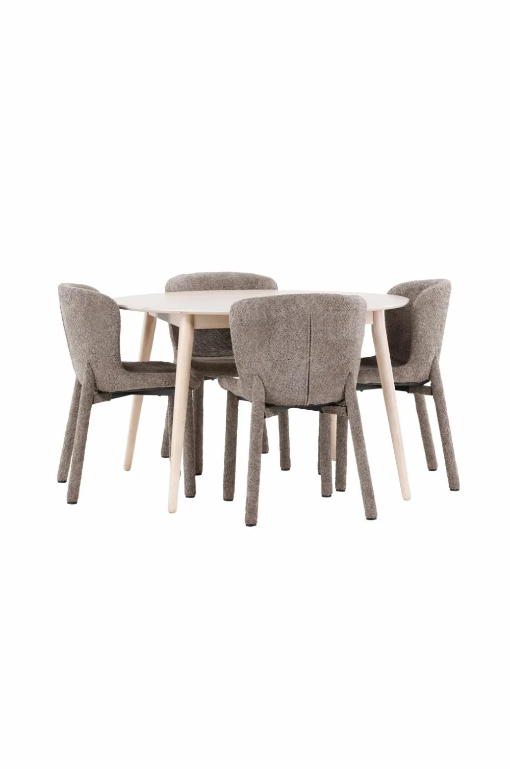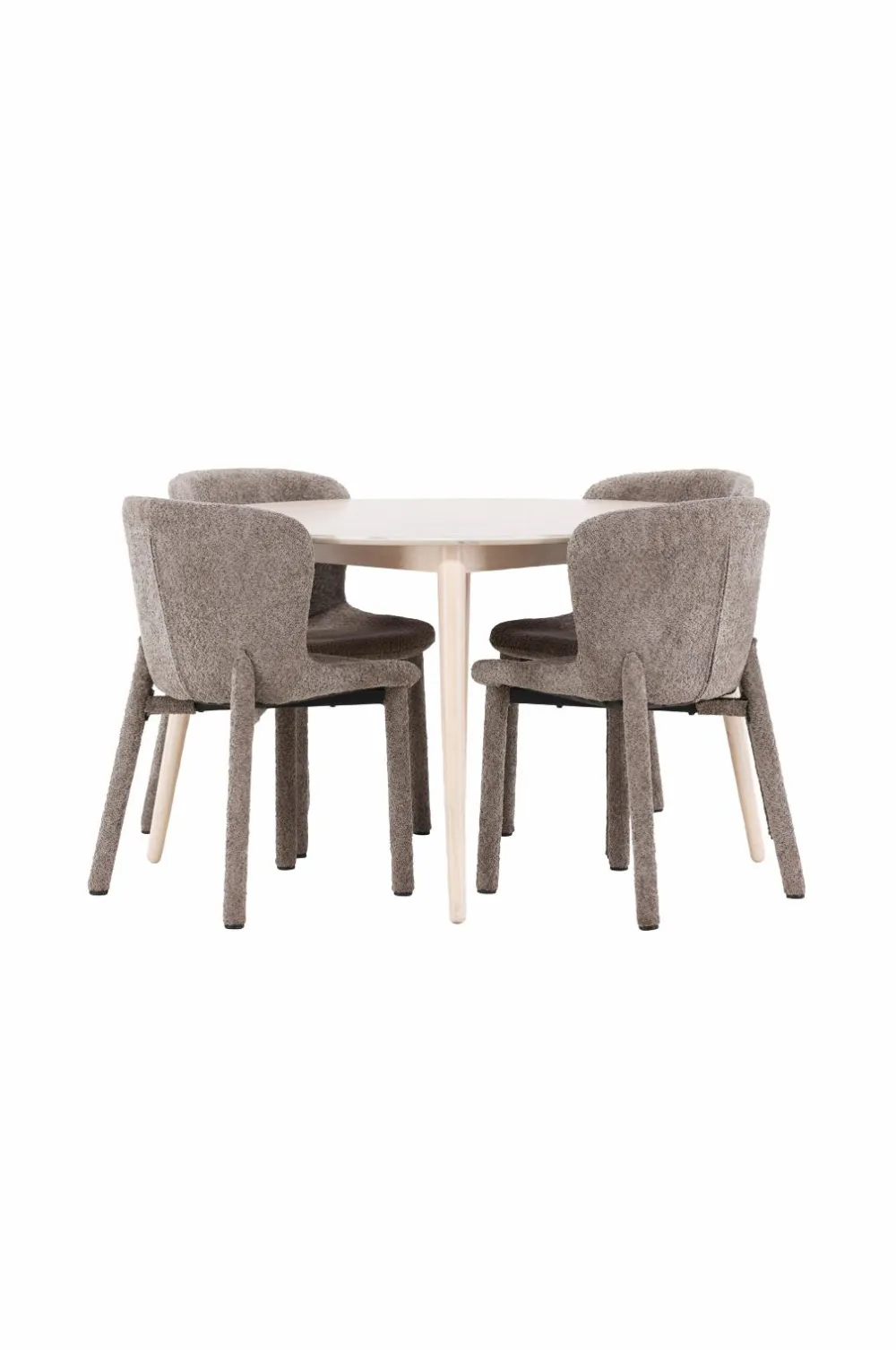 Sammen opnår astoria og flora den perfekte balance mellem sofistikeret design og funktionalitet. Astoria-stolens raffinerede bouclé supplerer floras tidløse og indbydende design, hvilket resulterer i en harmonisk og stilfuld spiseplads.