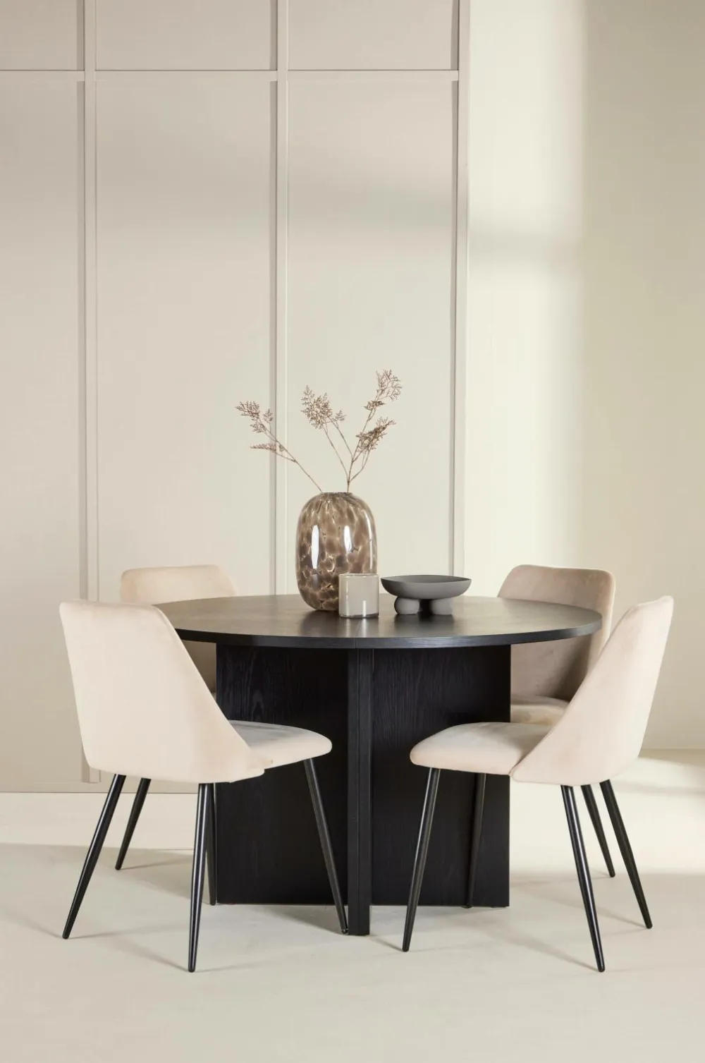 strada-spisebordet kombinerer slank elegance med praktisk funktionalitet. Bordet er fremstillet af finértræ af høj kvalitet og fremhæver materialets naturlige struktur og giver en luftig fornemmelse i din spisestue. Med en diameter på 120 cm er strada ideelt til hverdagens måltider, men når det er nødvendigt, kan det nemt forlænges til 170 cm, så der er plads til flere gæster. Den robuste konstruktion og det tidløse design gør det til et pålideligt og stilfuldt midtpunkt i dit hjem.