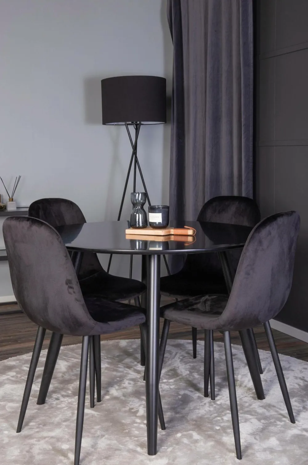 Plaza, et moderne og pænt spisebord – her sammen med spisebordsstole i polar-serien. Skab noget pænt og socialt med plads til god mad og socialt samvær!