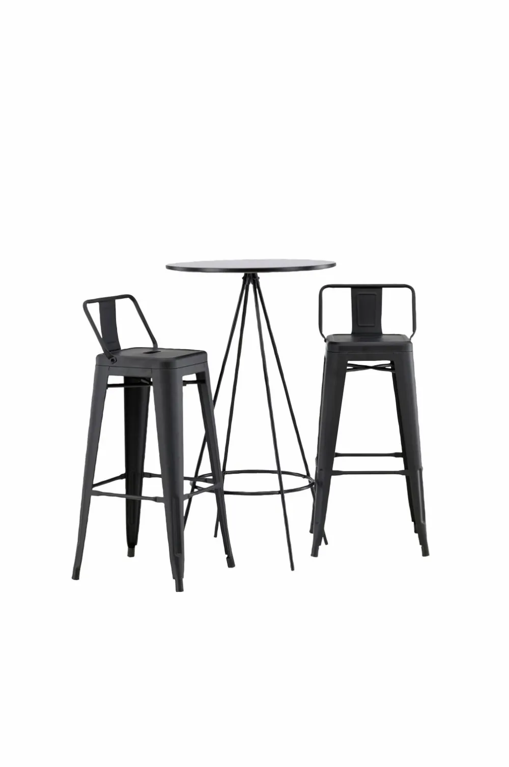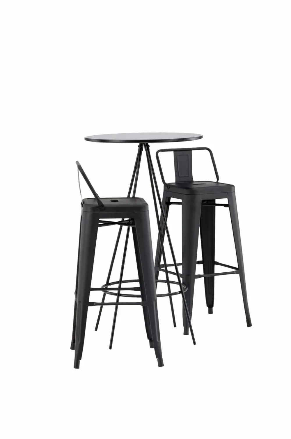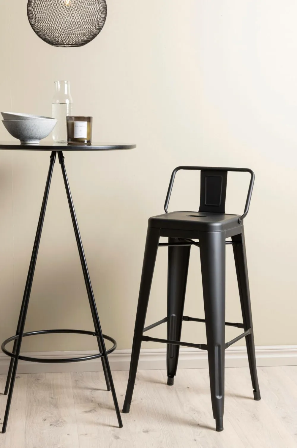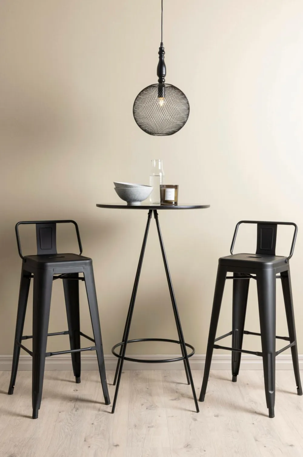 Den perfekte kombination! Barbordet Bistro har et minimalistisk, skandinavisk design med en rund bordplade i MDF med finér. De lette, kegleformede bordben er let skråtstillede i metal og har en integreret ramme til fodstøtte. Her i fin kombination med barstole fra serien Tempe. Barstolen har et klassisk design som en højere taburet med let skrånende ben og sæde med et lavere ryglæn i stål samt integreret fodstøtte. Skab et stilrent blikfang!