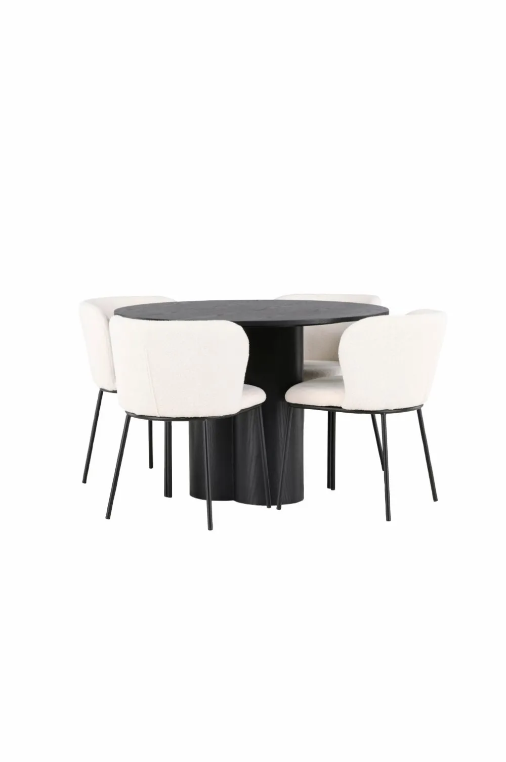 Her i perfekt kombination med spisebordsstole fra serien Edina. Disse stole har et smidigt, fuldt betrukket sæde i boucléstof og minimalistiske stoleben i metal. Det stilrene design giver en tidløs fornemmelse og det komfortable sæde sikrer, at du og dine gæster kan nyde lange og dejlige middage.