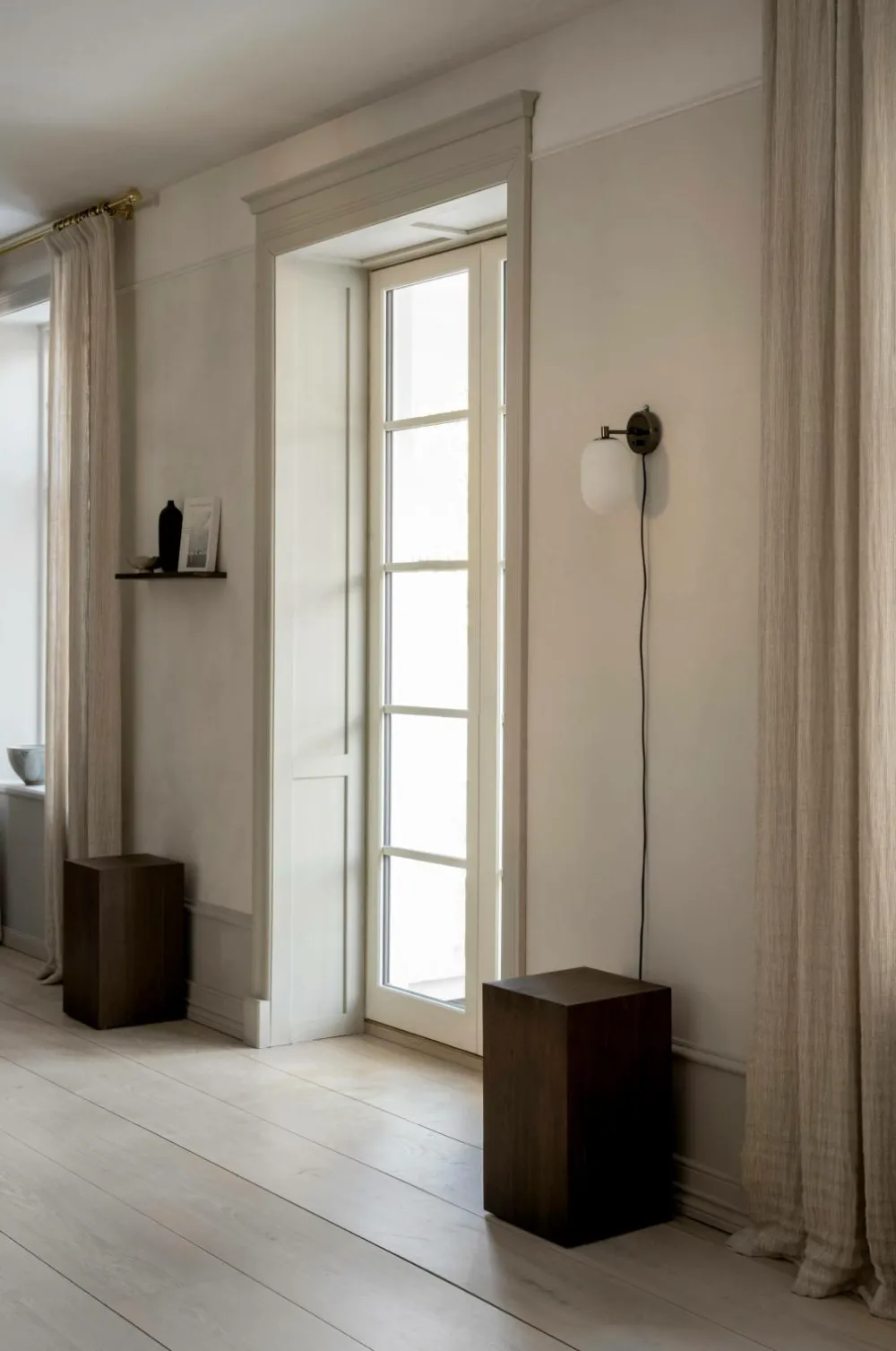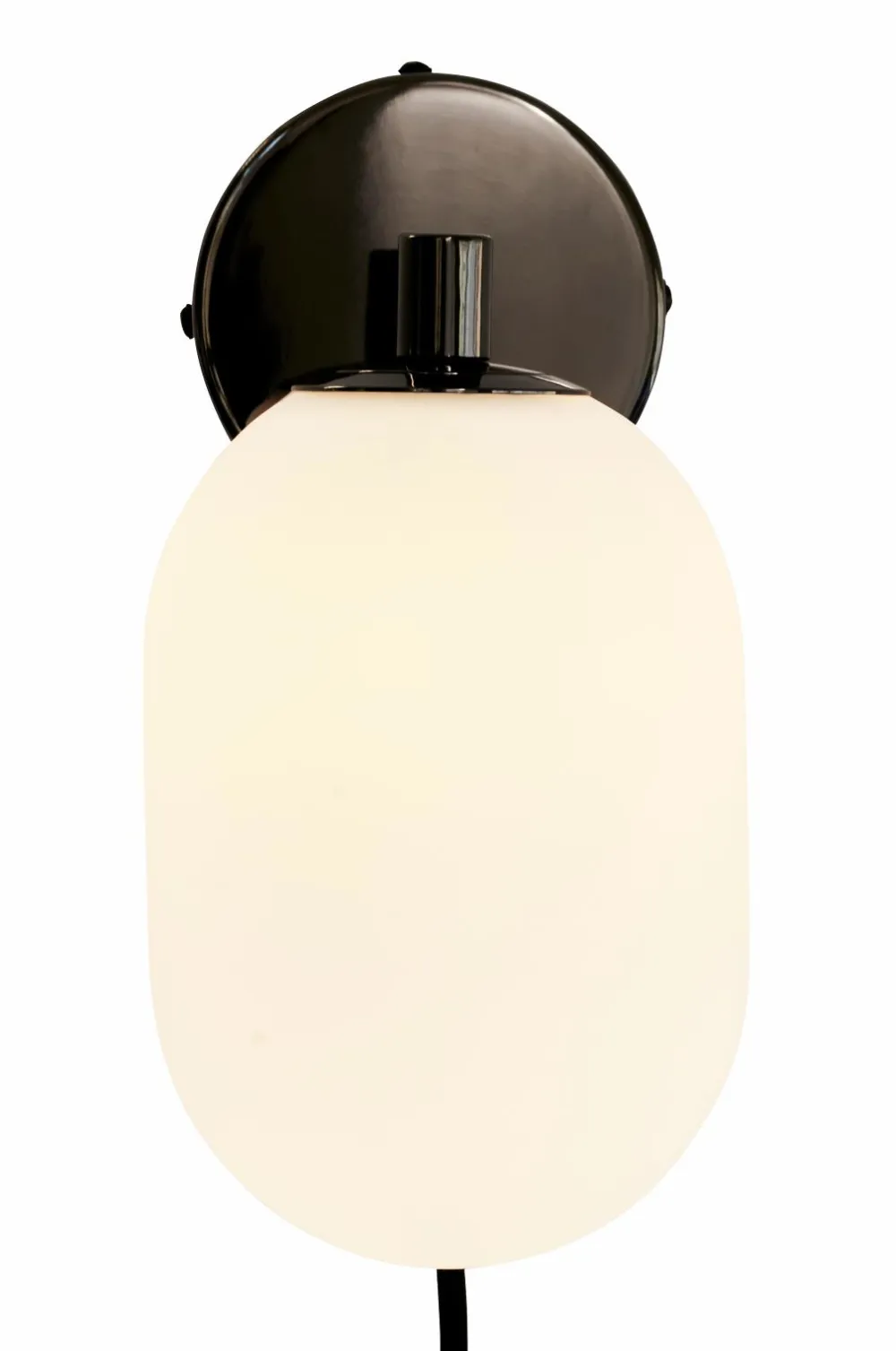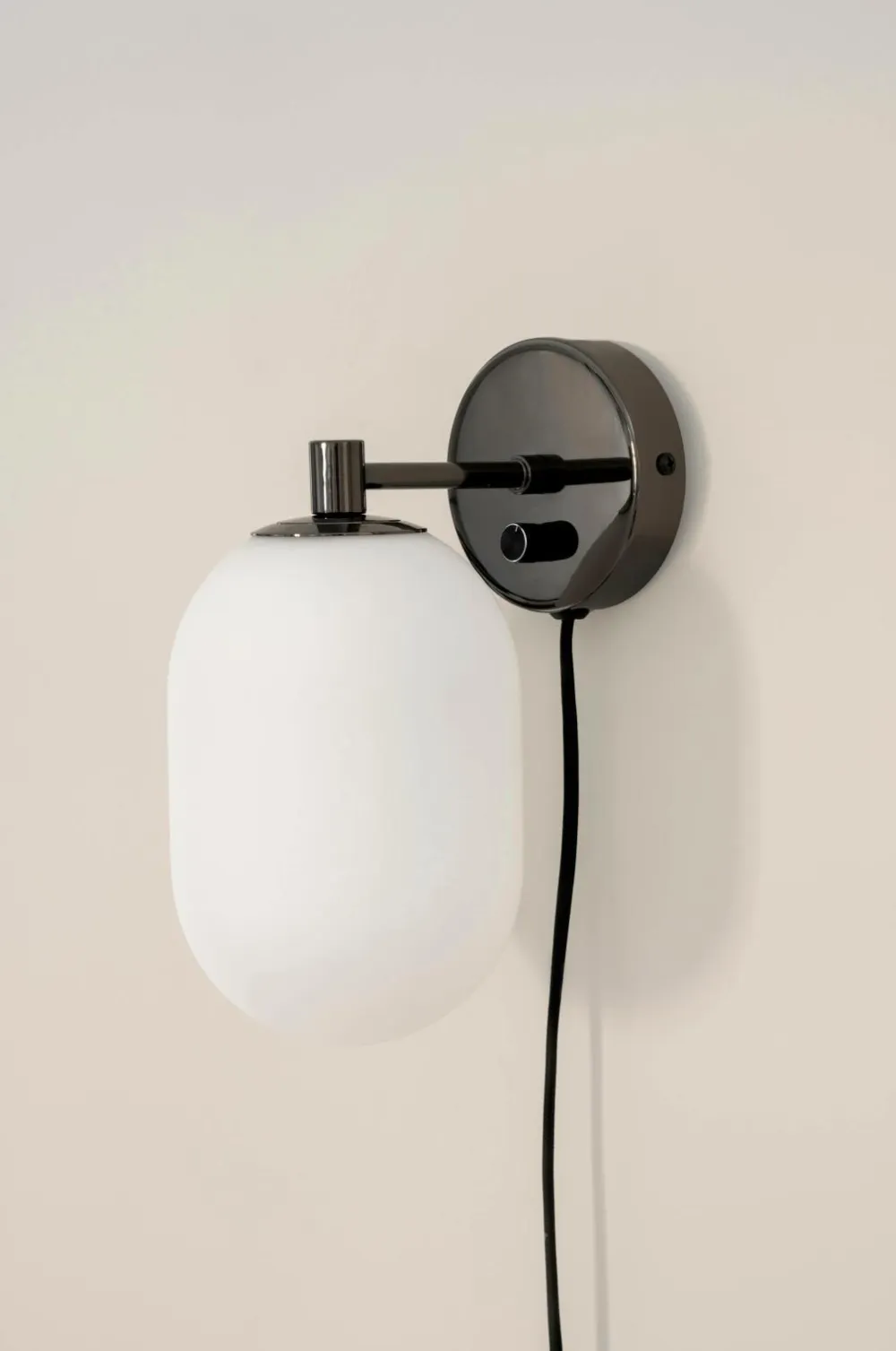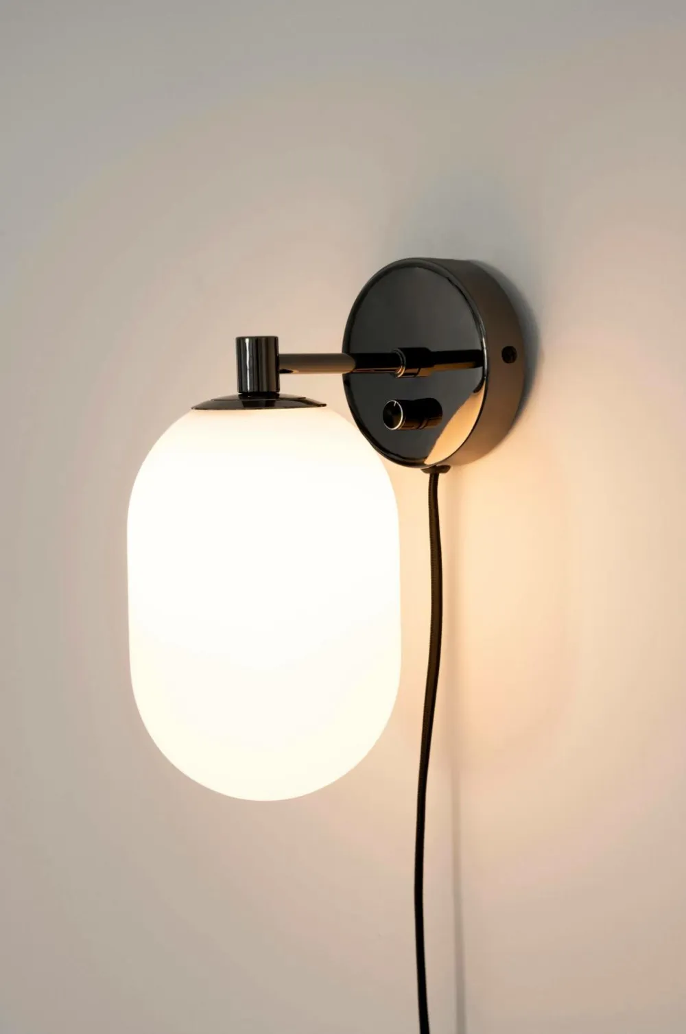 Noor Væglampen i mundblæst glas og sort krom er den perfekte blanding af tidløs elegance og moderne funktionalitet. Det mundblæste glas udsender en blød, omgivende glød, mens de sorte kromdele tilføjer et raffineret og stilfuldt touch. Lampen har en sort tekstilledning med en integreret lysdæmper på vægbeslaget, som gør det nemt at justere lysstyrken, så den passer til alle omgivelser. For at opnå et sømløst look kan den også tilsluttes til fast installation, hvilket gør den ideel til både bolig- og erhvervsområder. Brug den med dæmpbare G9 LED-pærer for at opnå den perfekte stemning til enhver lejlighed. Perfekt som sengelampe, i gangen eller som lysspot i stuen. Dens tidløse design og førsteklasses materialer passer til en bred vifte af indretningsstile.