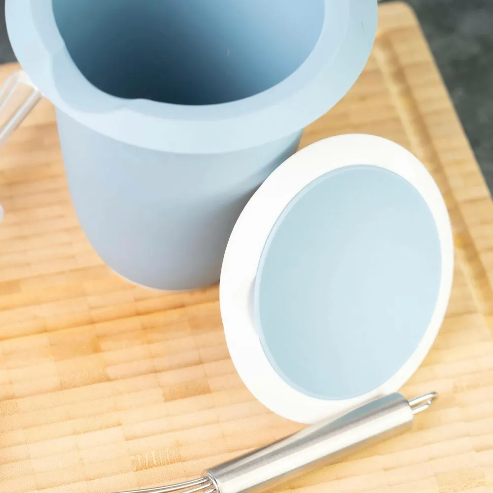 Røreskål med låg, 1l, blå/hvid