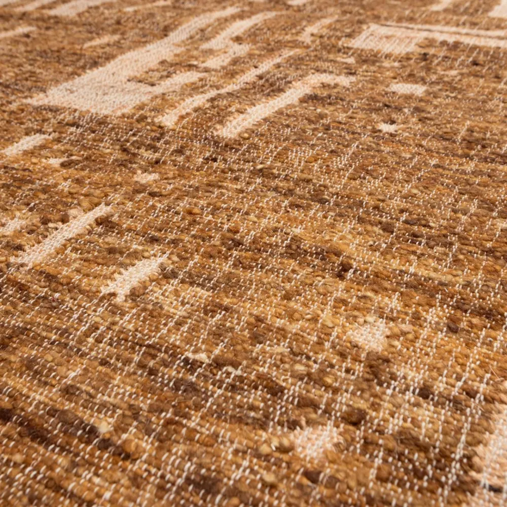 Tæppet Ian fra den hollandske interiørbrand Wooods kollektion skaber øjeblikkeligt atmosfære og komfort i dit hjem. Det håndvævede tæppe er fremstillet af en blanding af 50 % uld og 50 % bomuld, hvilket sikrer en blød fornemmelse og langvarig kvalitet. Det geometriske mønster giver tæppet et moderne twist, mens de varme toner skaber et hyggeligt og indbydende look. Perfekt som blikfang i stuen, spisestuen eller soveværelset.