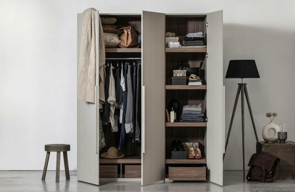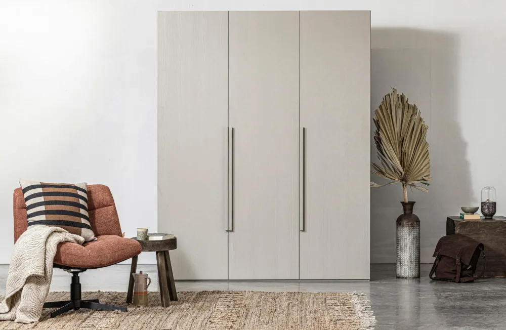 Det robuste garderobeskab Rens er en del af en kollektion fra det hollandske mærke WOOOD og passer til mange forskellige indretningsstile og i stemningsfulde soveværelser. Garderoben Rens har tre smalle låger som dækker hele højden. Lågerne skjuler en stor bøjlesektion og fire rummelige opbevaringsrum. De tre skuffer giver mere end nok plads til alle typer tøj og tilbehør.