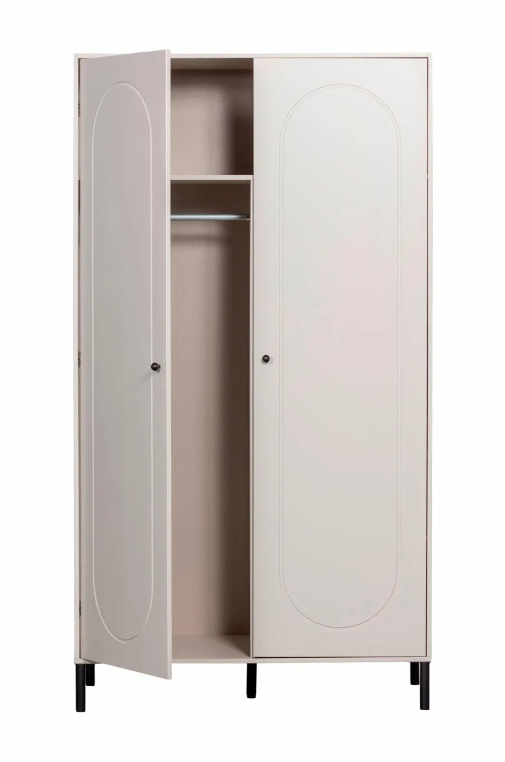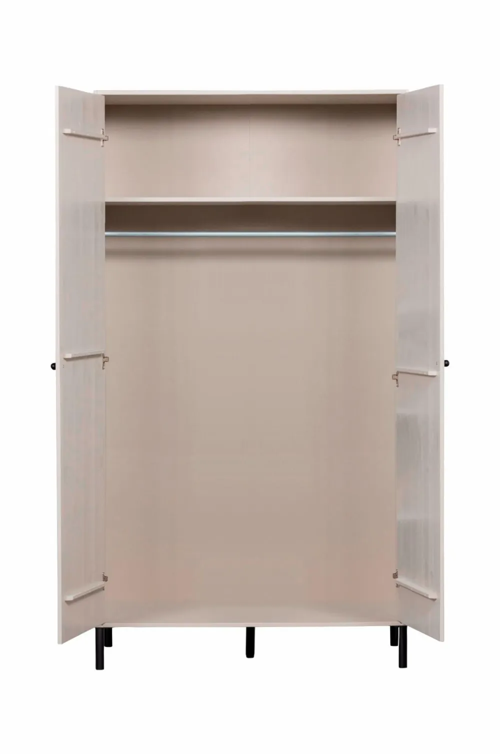Leder du efter et generøst garderobeskab? Så er xina det rigtige valg! To-dørs garderobeskabet xina er fra kollektionen af det hollandske interiørdesignmærke woood og er lavet af fsc-certificeret fyrretræ. xina-garderoben har som standard en hylde og en generøs hængesektion. Serien har en valgfri indvendig pakke med tre hylder til mere flad opbevaring.