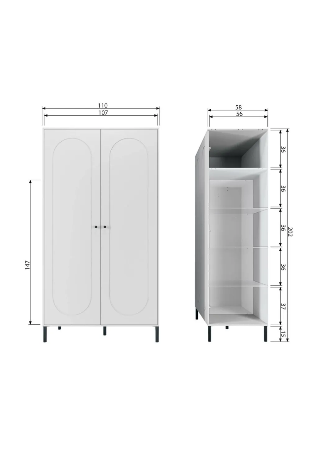 h 202 cm x b 110 cm x d 55 cm