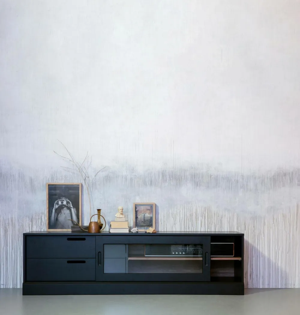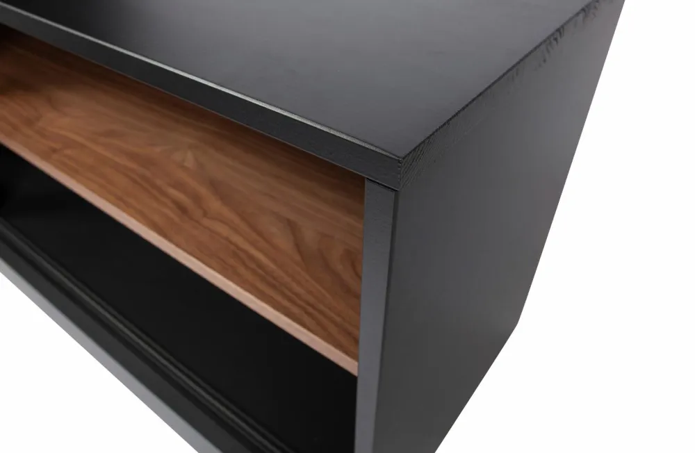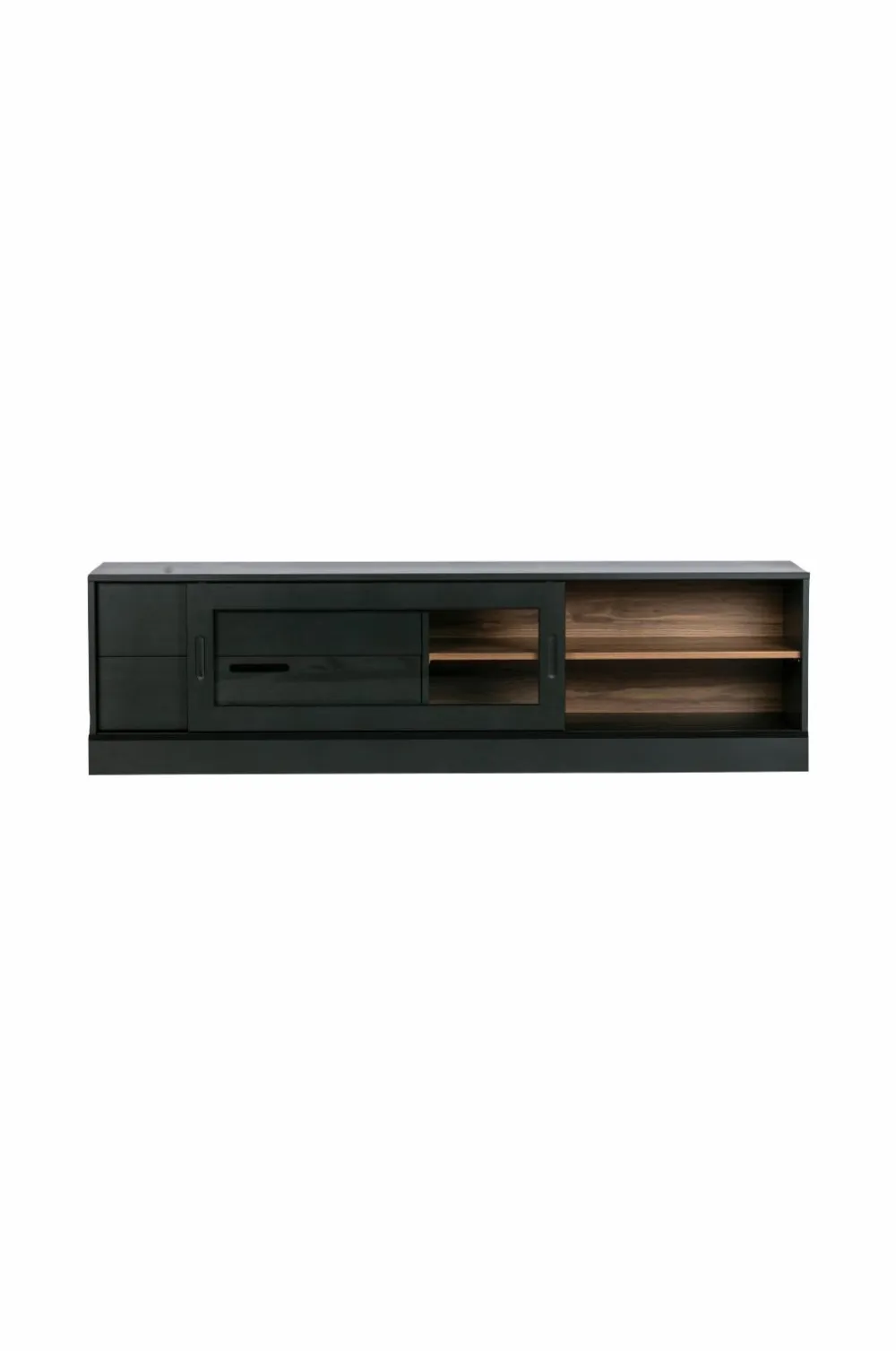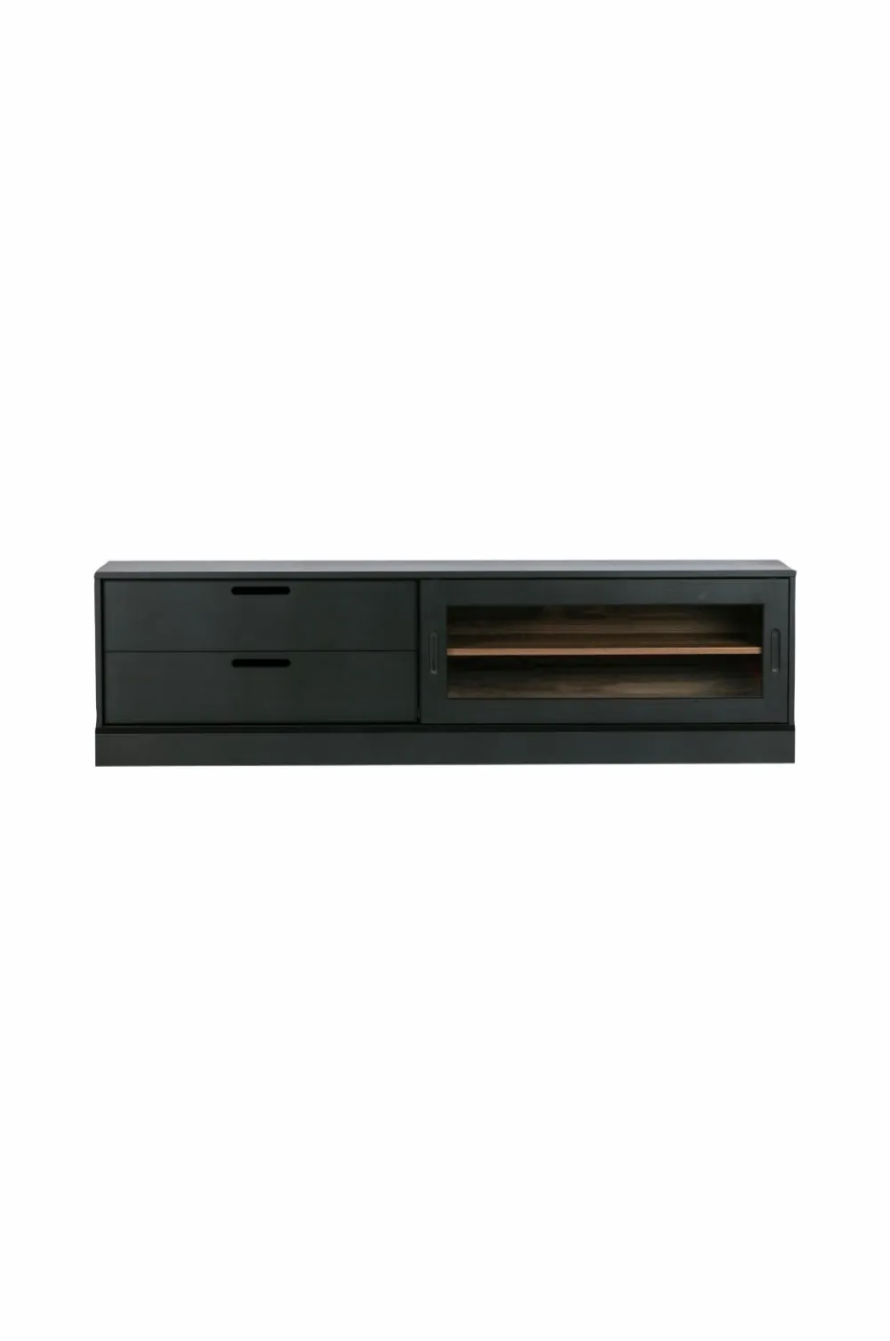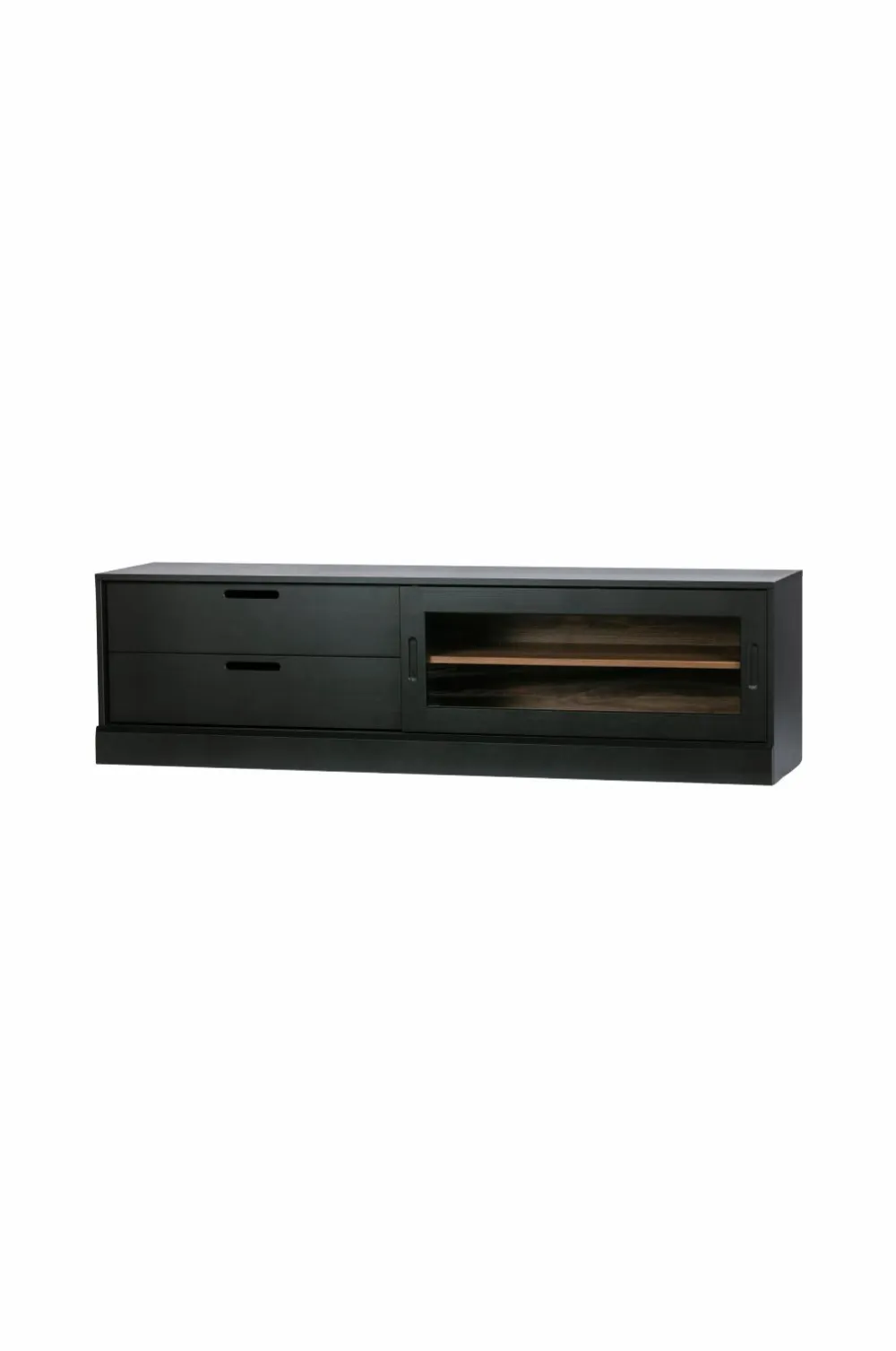 Del af serien James. TV-skabet James har to skuffer og to åbne rum med skydelåge i glas.