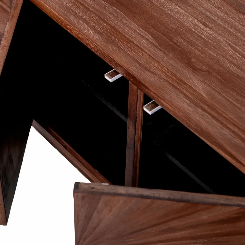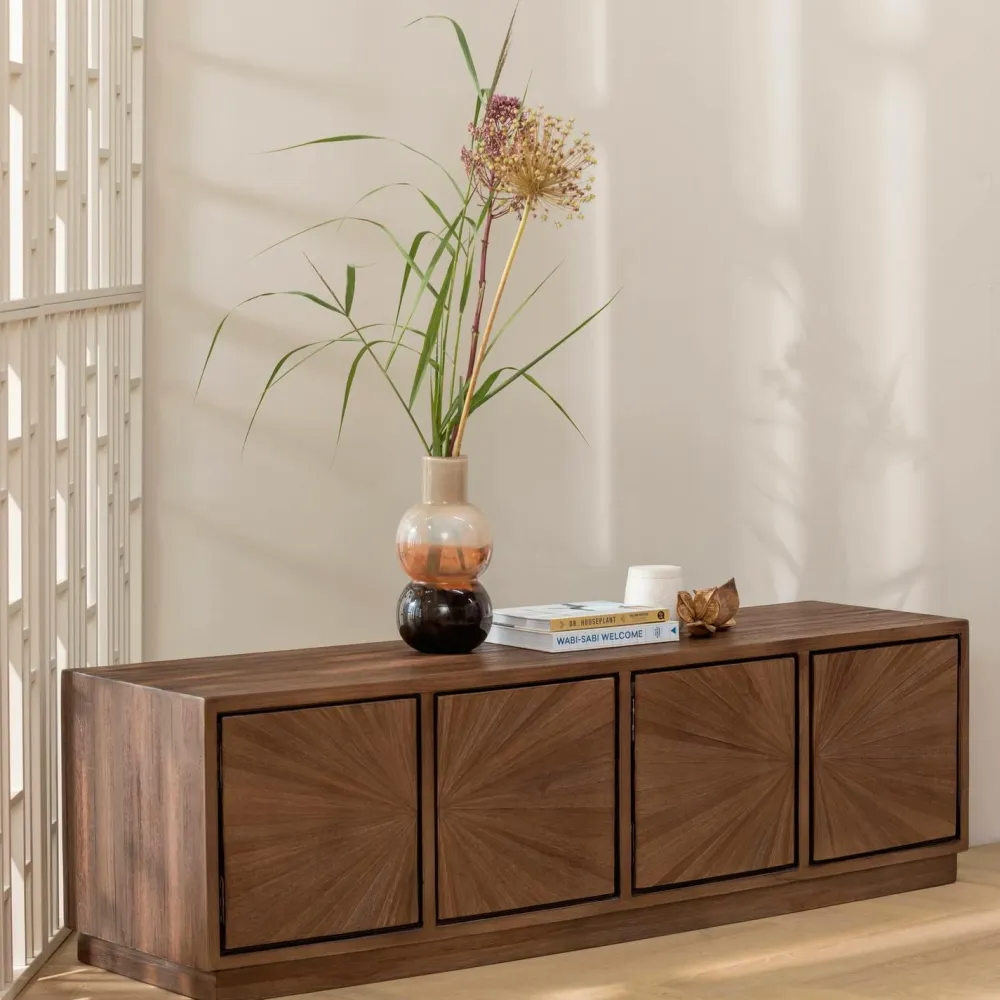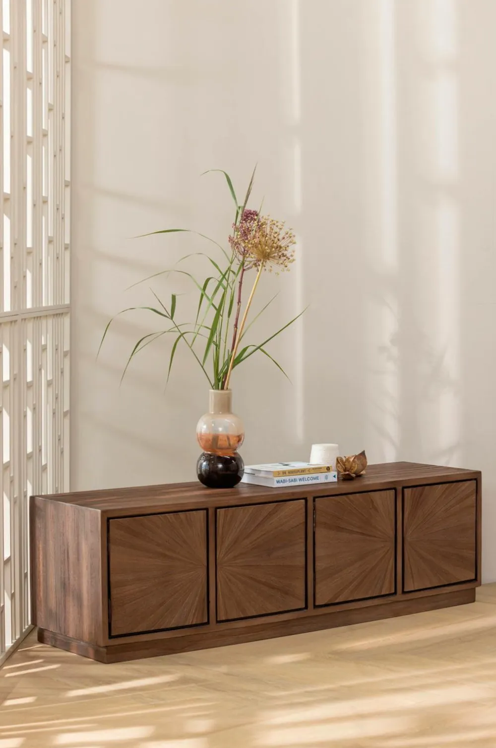 leder du efter et tv-skab, der både er stilfuldt og praktisk? Så vælg sun! Sun tv-skabet er en del af kollektionen fra det hollandske interiørdesignmærke woood og er fremstillet af genbrugt teaktræ. De raffinerede detaljer på lågerne giver skabet et unikt, håndværksmæssigt look. Bag de fire låger er der rigelig opbevaringsplads til udstyr eller andet tilbehør. På den måde kan du nemt opbevare alt!