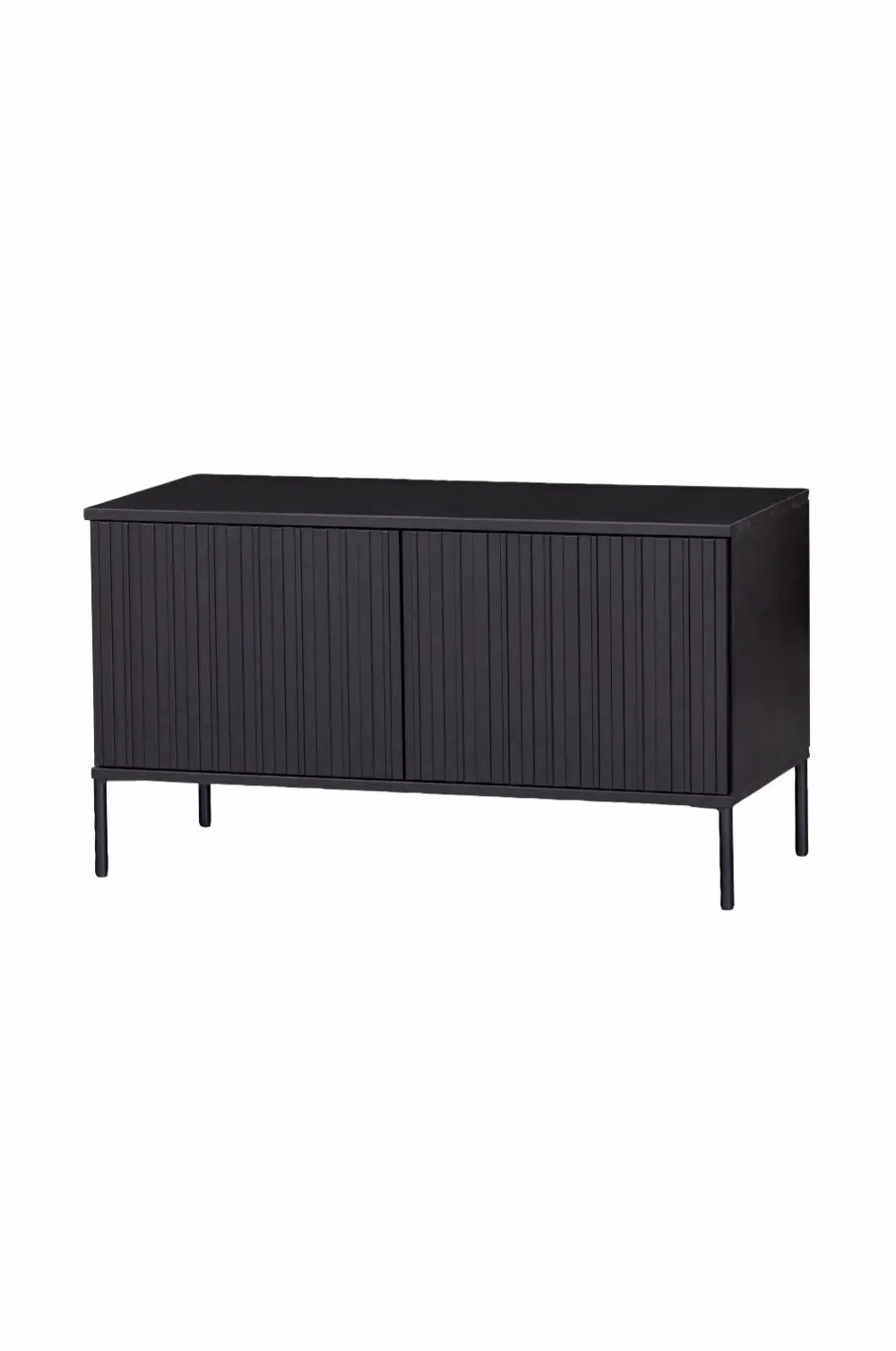 Stabil tv-bænk med grafisk reliefmønster på lågerne