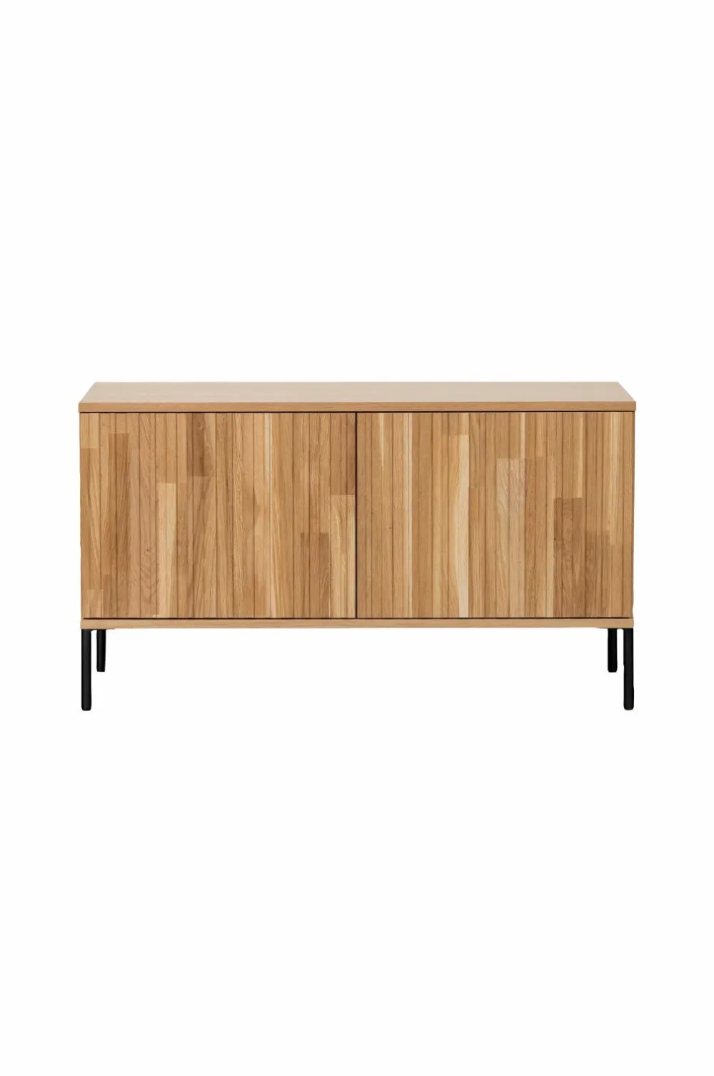 Stabil tv-bænk med grafisk reliefmønster på lågerne