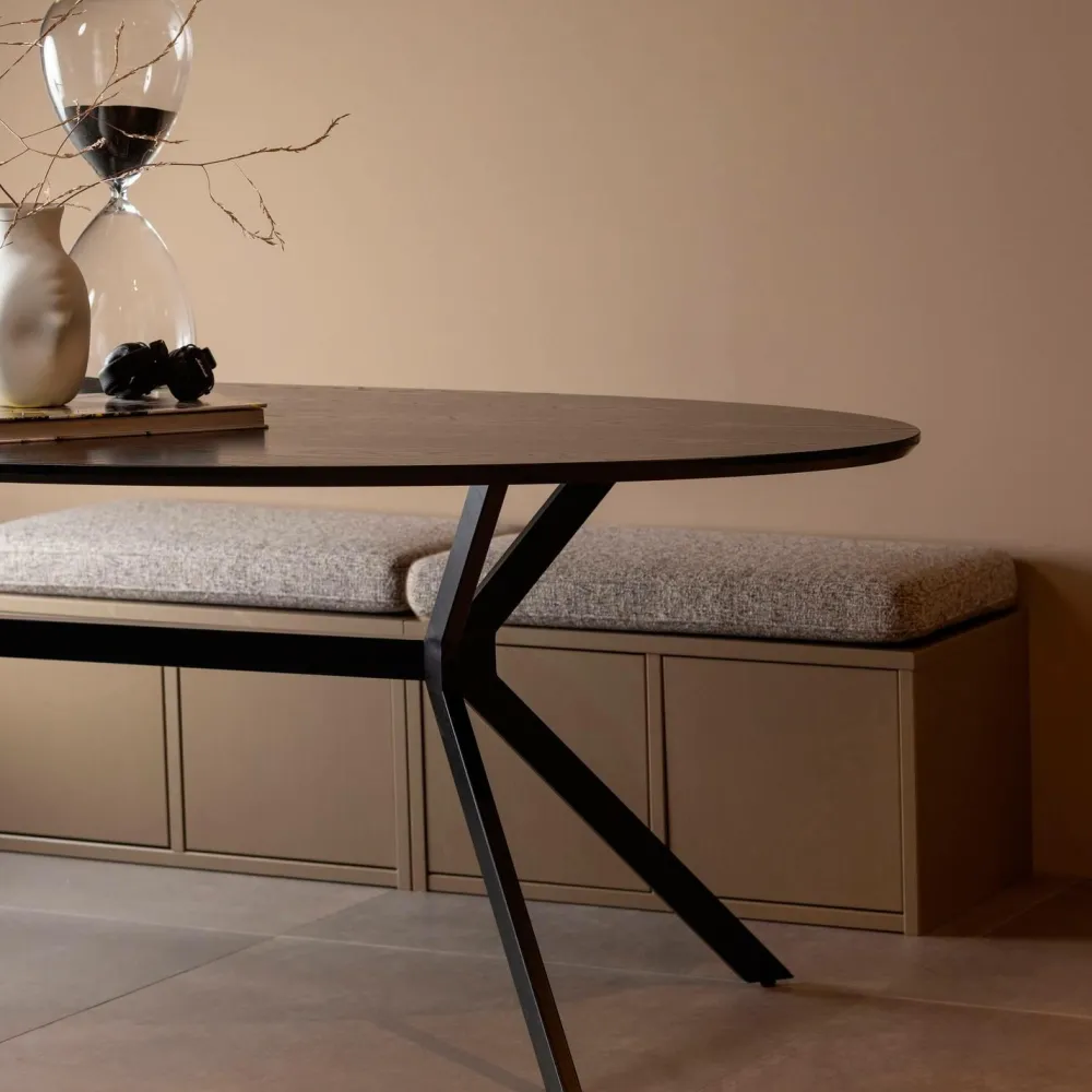 Varen leveres i én pakke og er nem at samle ved hjælp af den medfølgende monteringsvejledning. For at beskytte hårde gulve skal du placere filtglidere på undersiden af benene.