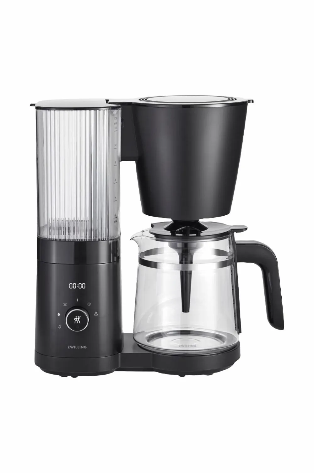 Zwillings prisvindende kaffemaskine er designet med effektivitet, kvalitet og topmoderne funktioner. Kaffemaskinen holder en konsekvent bryggetemperatur på 92 til 96 °C. Dette giver en optimal brygning og fyldig kaffearoma. Indersiden i rustfrit stål er meget korrosionsbestandigt og meget holdbart. Det ændrer heller ikke på smagen af bryggevandet, sammenlignet med kaffemaskiner, der har kobber- og aluminiumselementer. Kaffemaskinen har et kraftigt brusemundstykke i rustfrit stål, der drypper vandet jævnt over kaffepulveret. Dette giver en “blooming effekt” som giver en blødere smag med maksimal aroma. Da denne effekt hjælper med at frigive kuldioxid fra kaffepulveret, reducerer den også den sure smag, der kan opstå hos nogle andre kaffemaskiner. Den elegante glaskande, der følger med, har en kapacitet på op til 12 kopper og et komfortabelt stabilt håndtag. Kaffemaskinen har både LCD-display, timerfunktion og et rengøringsprogram, der fortæller dig, hvornår det er tid til vedligeholdelse. Automatisk varmetilbageholdelse med optimal temperatur i 30 minutter, før den slukker. Zwillings kaffemaskine har fået den prestigefyldte SCA Golden Cup Standard, Specialty Coffee Associations højeste pris for kvalitetskaffemaskiner.